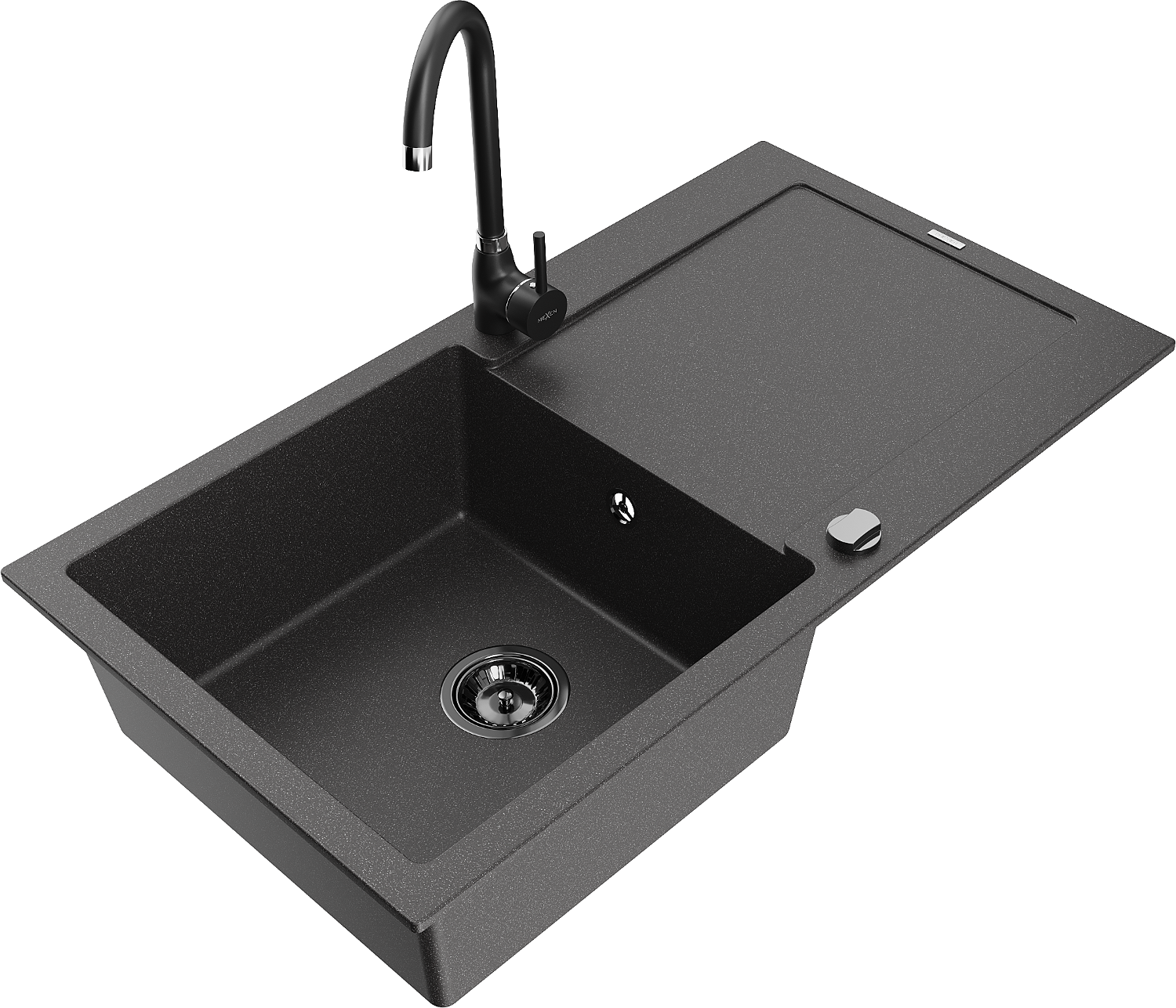 Mexen Leo 1-nodalījuma granīta izlietne ar noteku un virtuves jaucējkrānu Telma, melns ar punktiem - 6501-76-670200-70-B