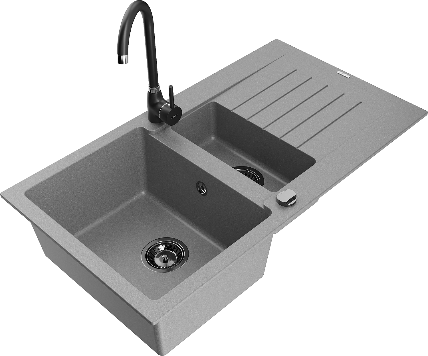 Mexen Matias granīta izlietne ar 1,5 nodalījumiem, ar noteku un virtuves jaucējkrānu Telma, pelēka - 6502-71-670200-70-B