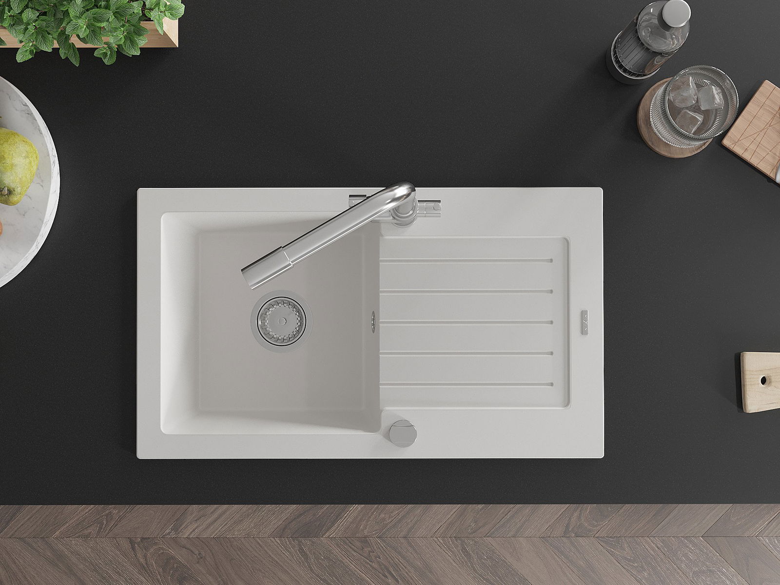 Mexen Pablo granitais izlietne ar 1 nodalījumu, noteces un virtuves jaucējkrānu Duero, balta - 6510-20-671600-00