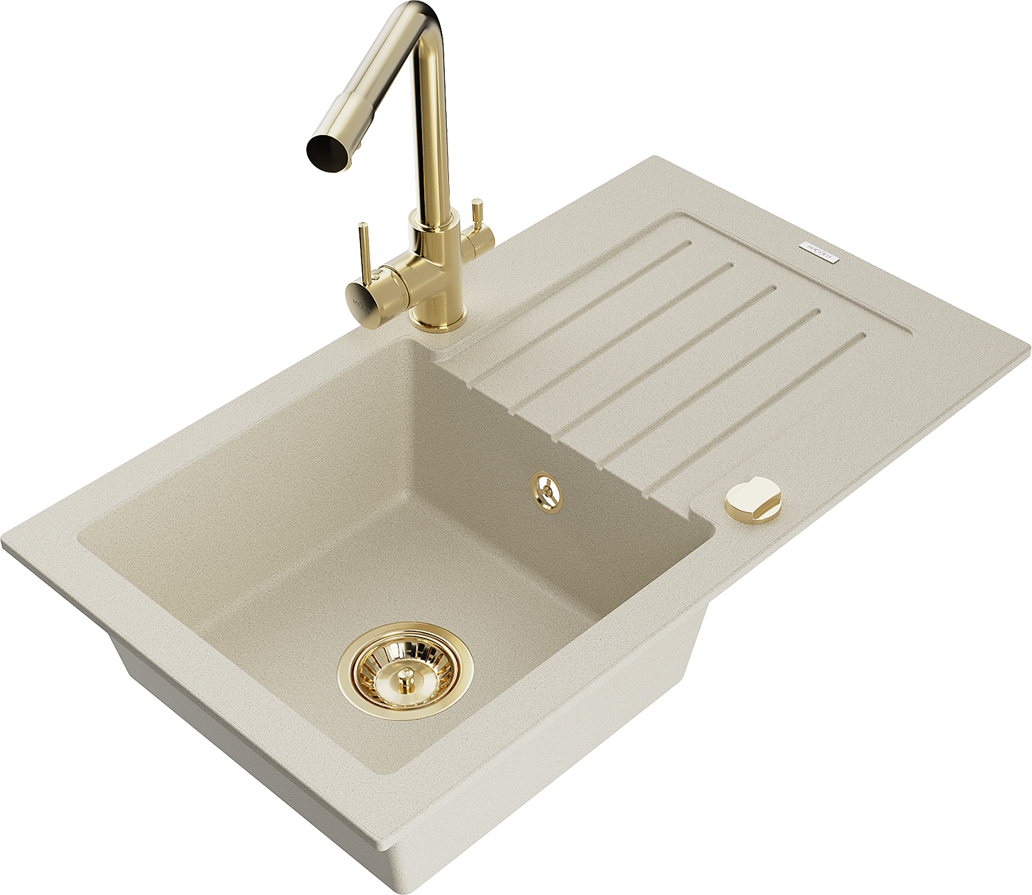Mexen Pablo granitē izlietne ar vienu nodalījumu, noteci un virtuves jaucējkrānu Duero, bēšs - 6510-69-671600-50
