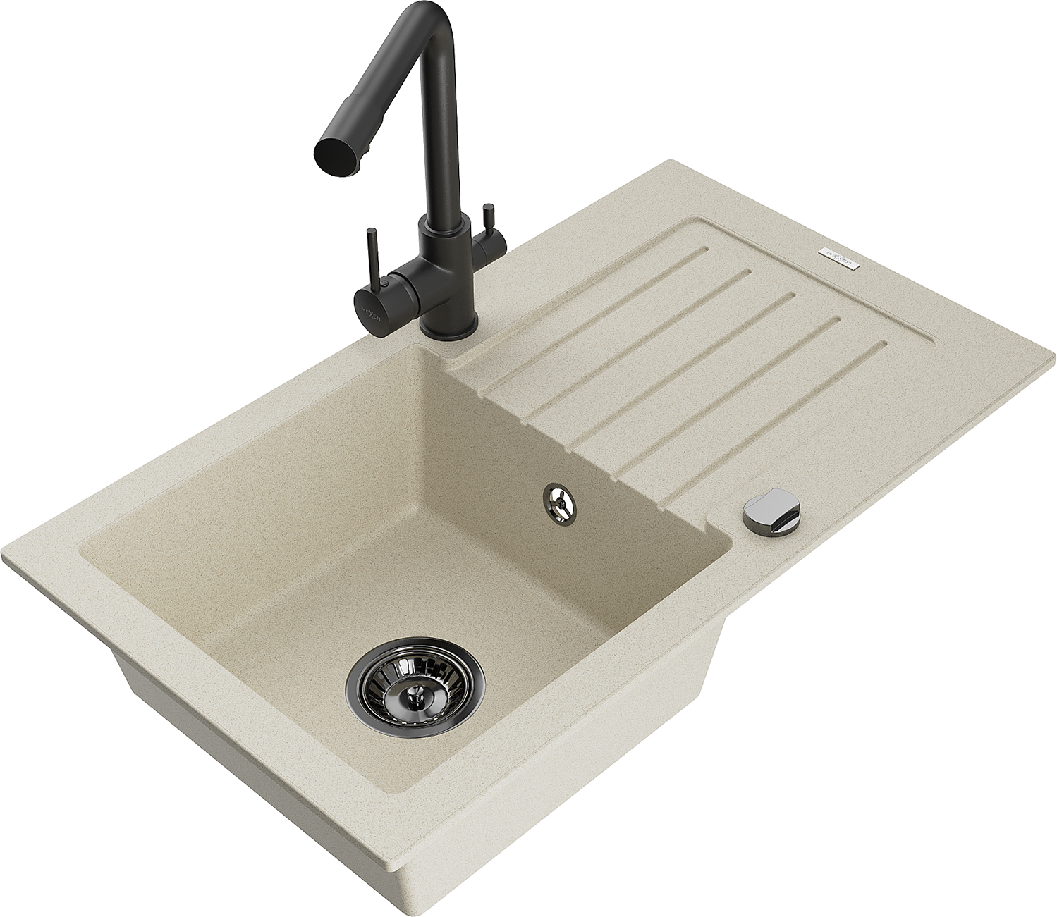 Mexen Pablo granit izlietne ar vienu nodalījumu, noteces virsmu un virtuves jaucējkrānu Duero, bēša - 6510-69-671600-70