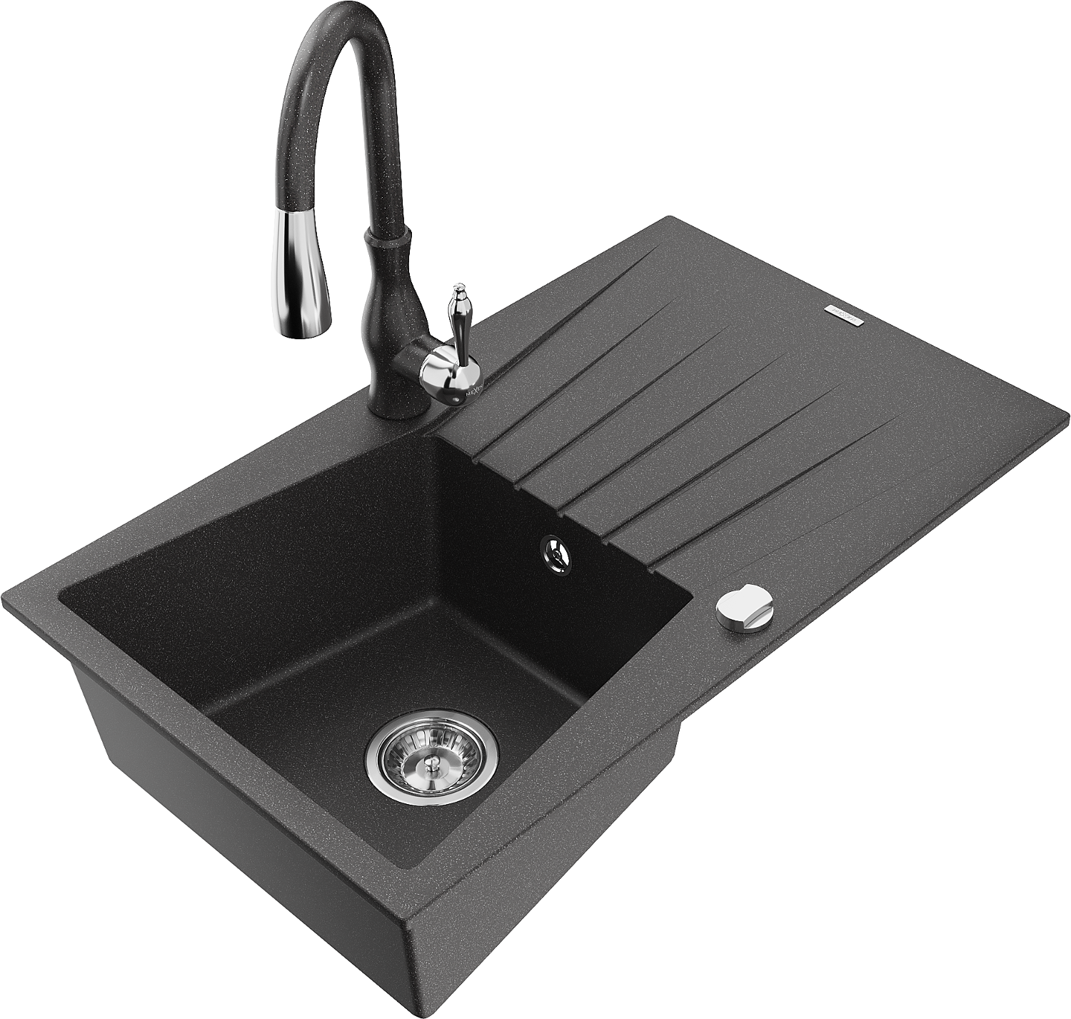Mexen Cesar granitizlietne 1-nodalums ar noteces sadaļu un virtuve jaucējkrānu Savita, melns ar punktiem - 6514-76-672601-76