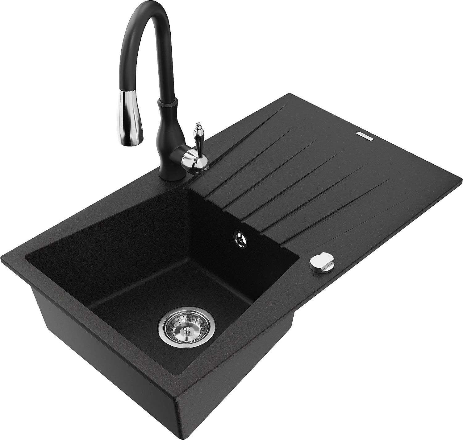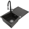 Mexen Cesar granitais izlietne, viena bļoda ar notekpaplāti un virtuvju jaucējkrānu Savita, melns - 6514-77-672601-70