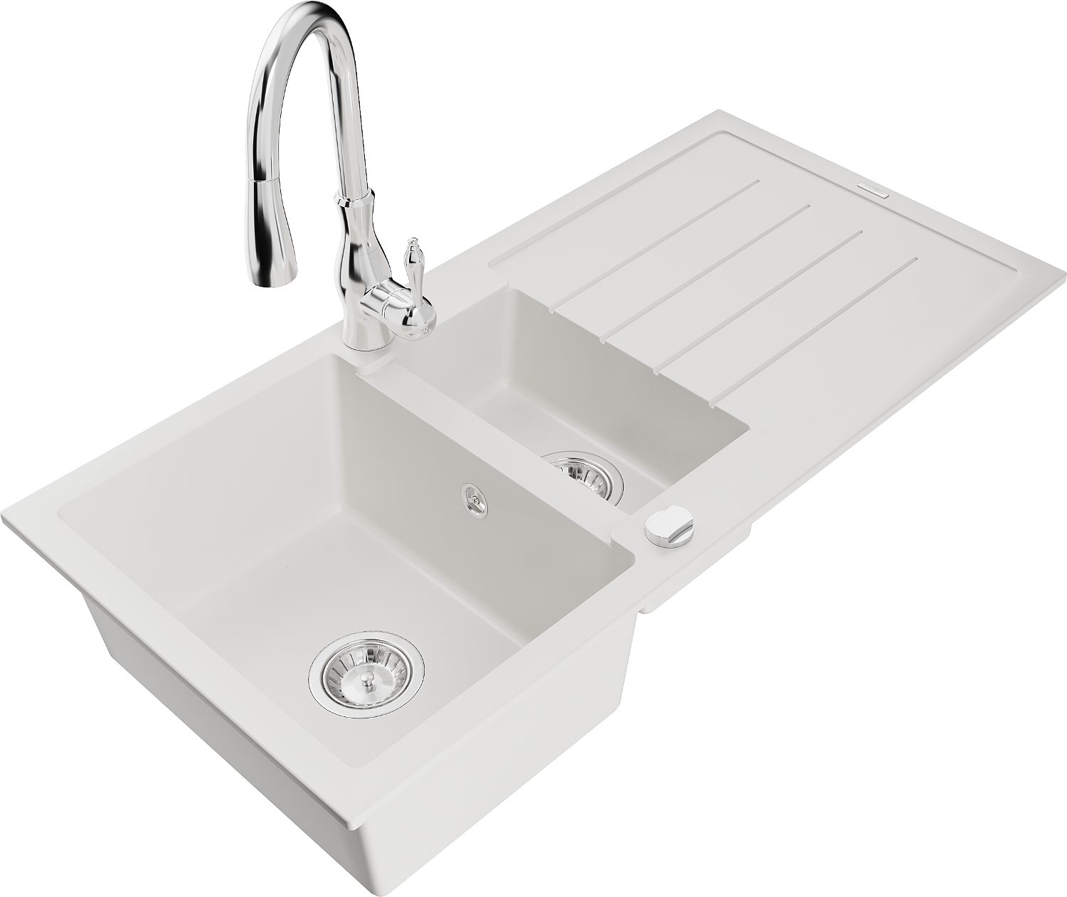 Mexen Andres granīta izlietne ar 1,5 nodalījumiem, noteces un virtuves jaucējkrānu Savita, balta - 6515-20-672601-00