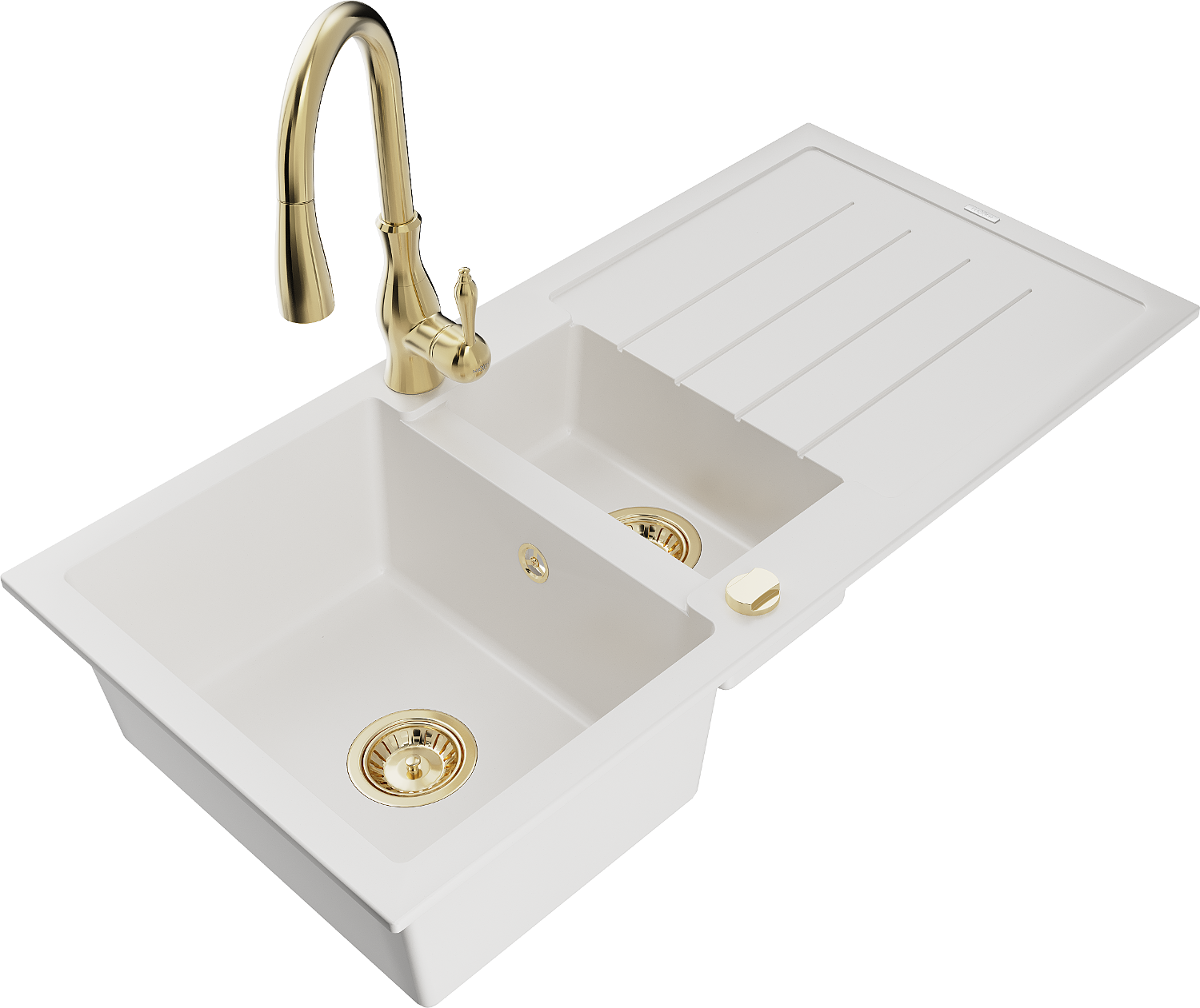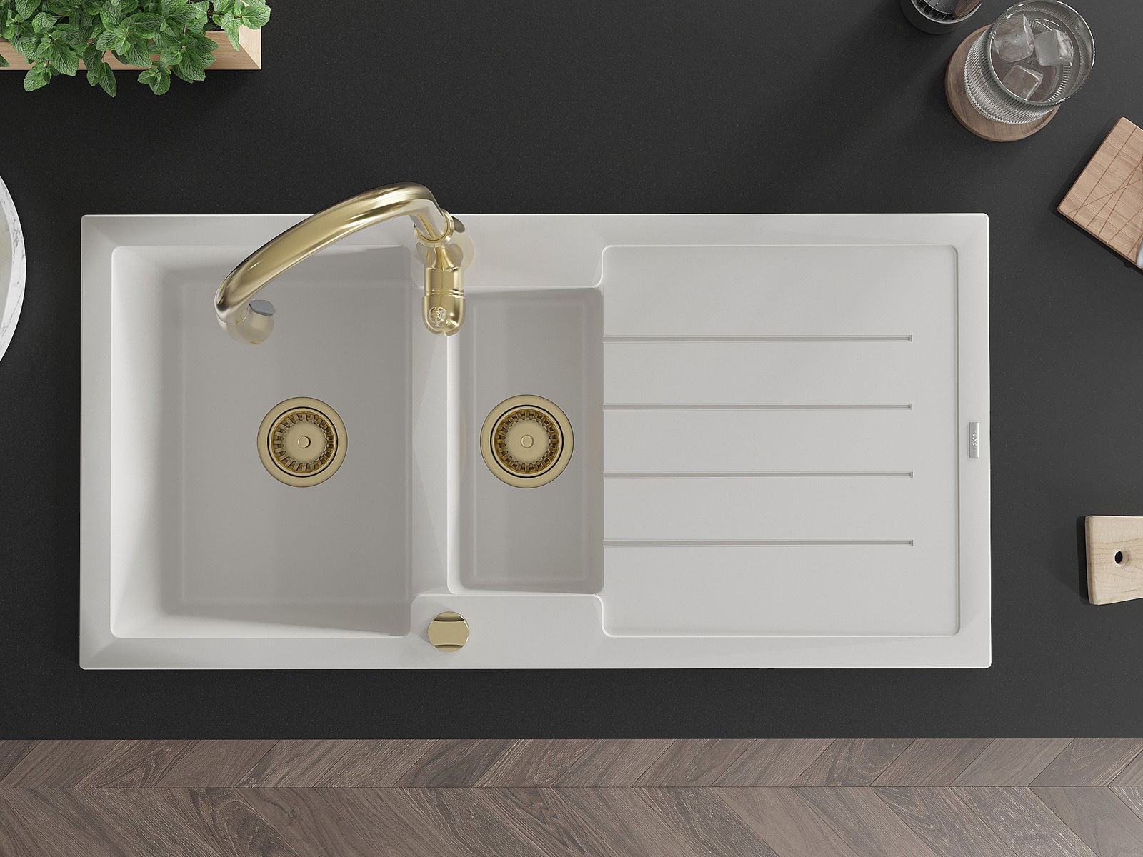 Mexen Andres granitizlietne 1,5 nodalījumu ar noteci un virtuves jaucējkrānu Savita, balts - 6515-20-672601-50