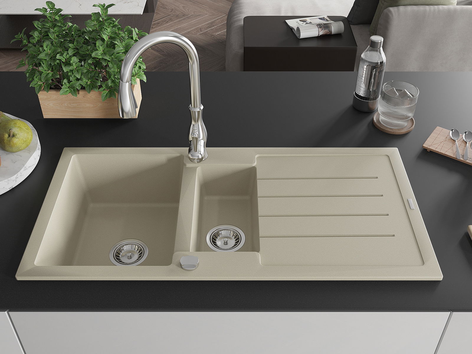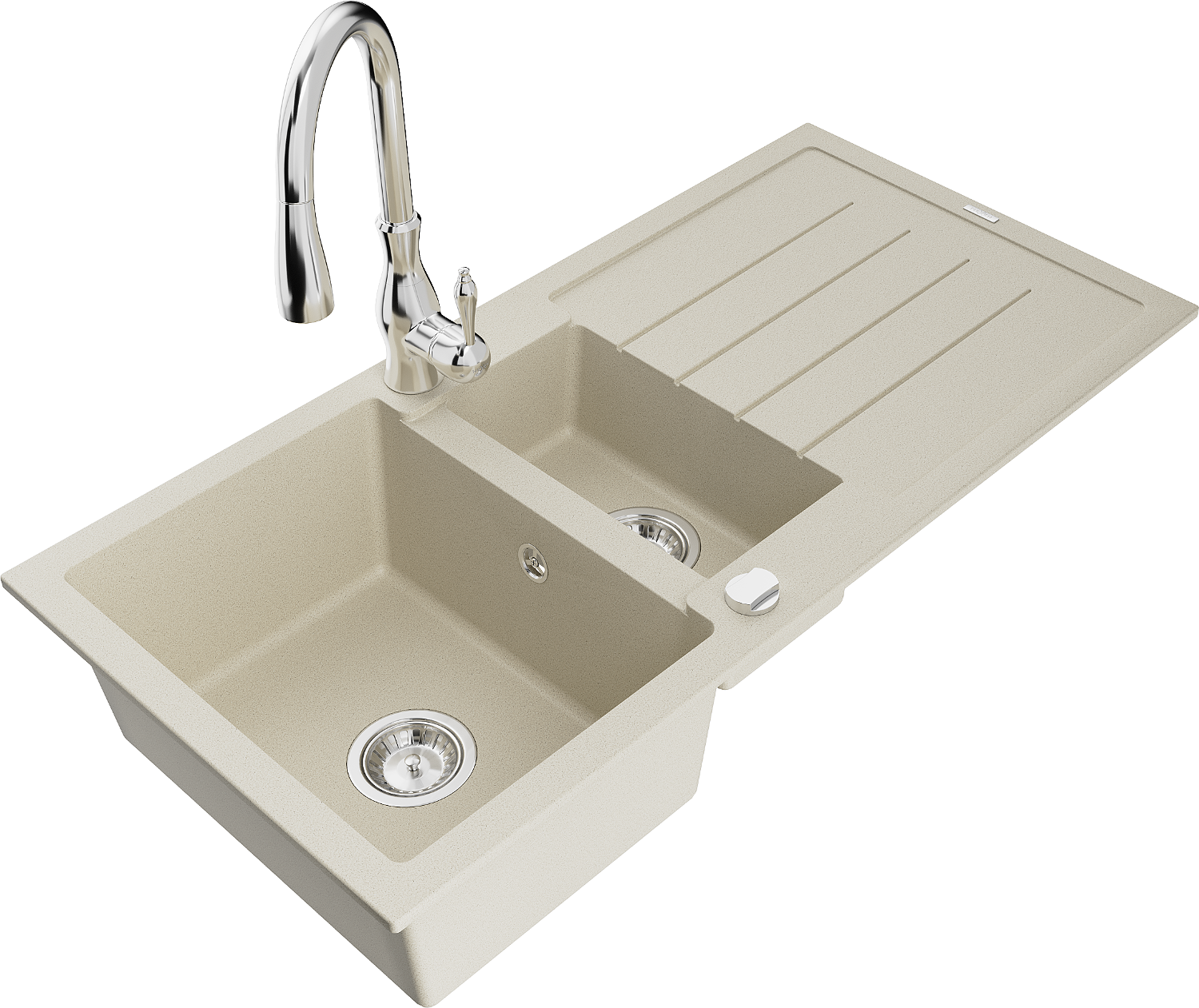 Mexen Andres granīta izlietne 1,5 nodalījumu ar notekas un virtuves jaucējkrānu Savita, bēšs - 6515-69-672601-00
