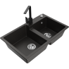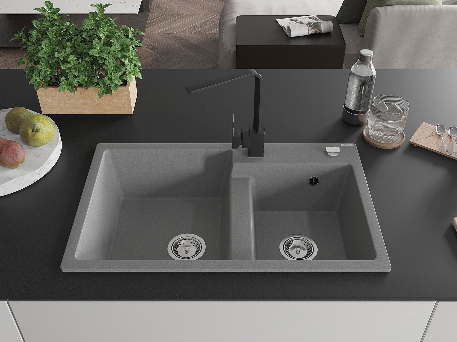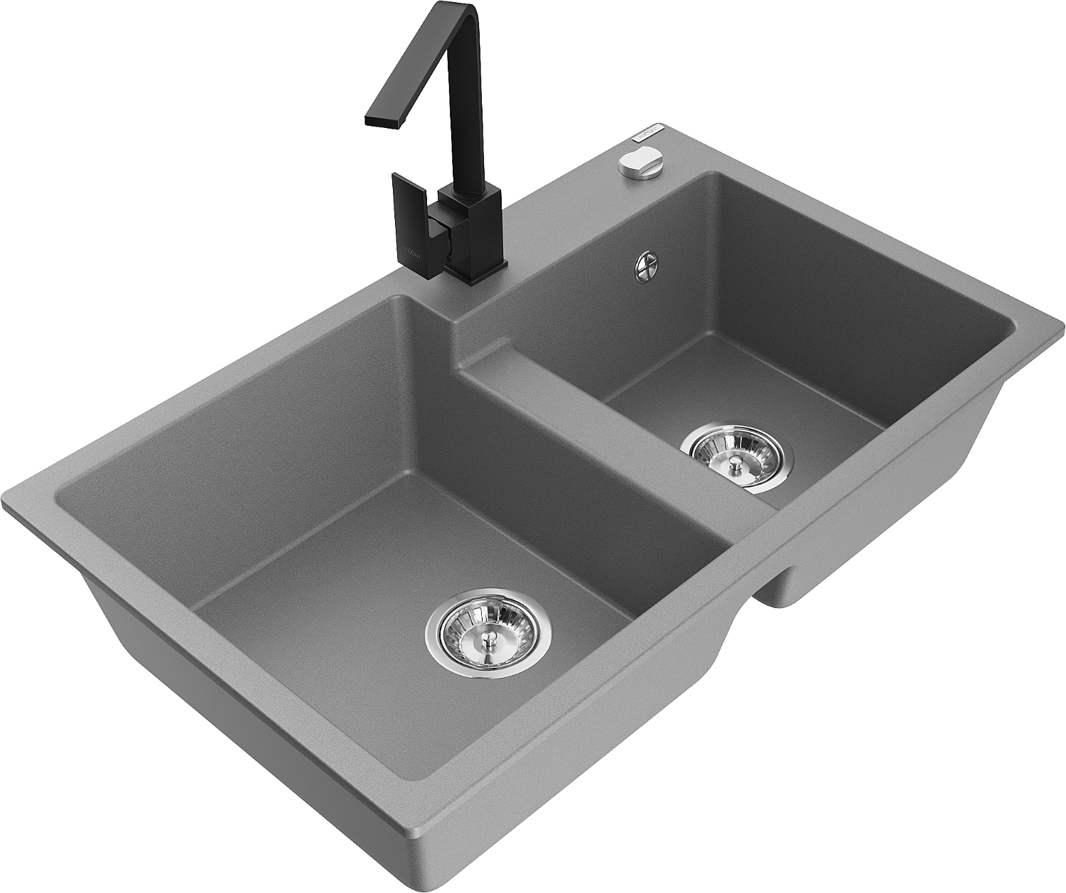 Mexen Tomas granitā izlietne ar 2 nodalījumiem un virtuves krānu Rita, pelēka - 6516-71-670300-70