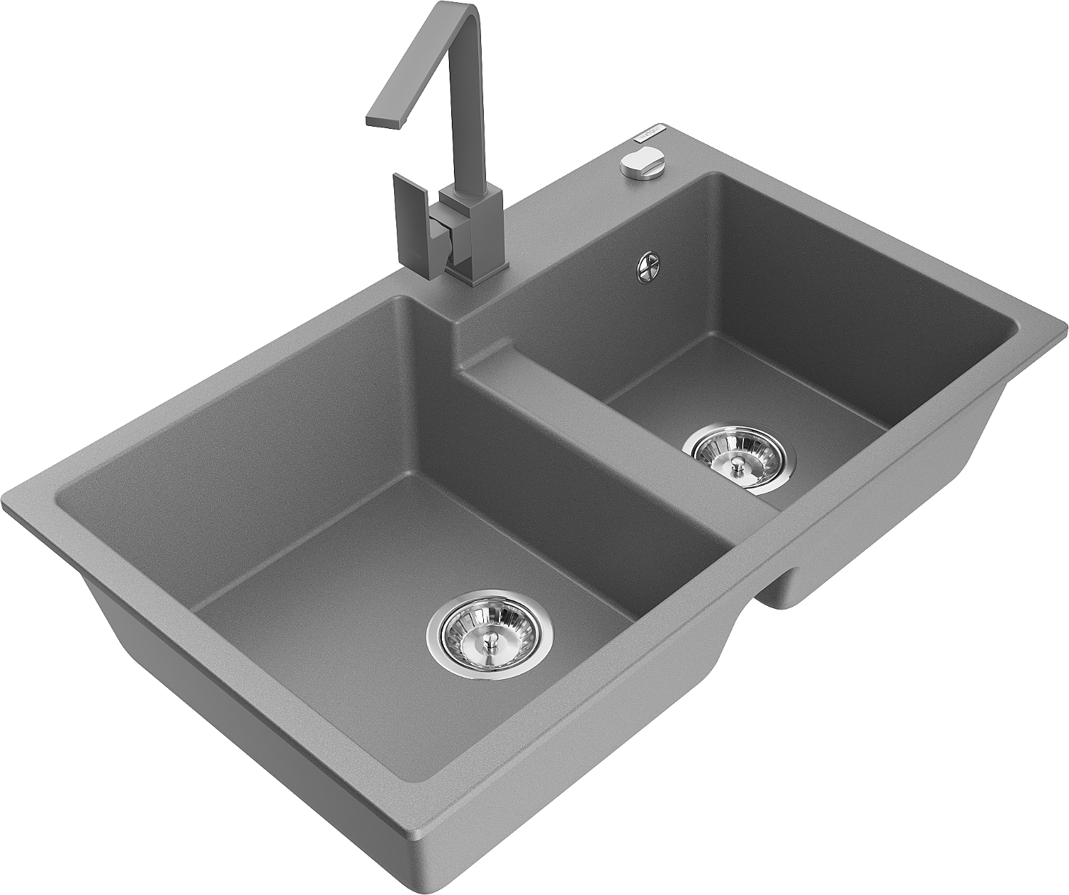 Mexen Tomas granit izlietne ar divām kamerām un virtuves jaucējkrānu Rita, pelēka - 6516-71-670300-71