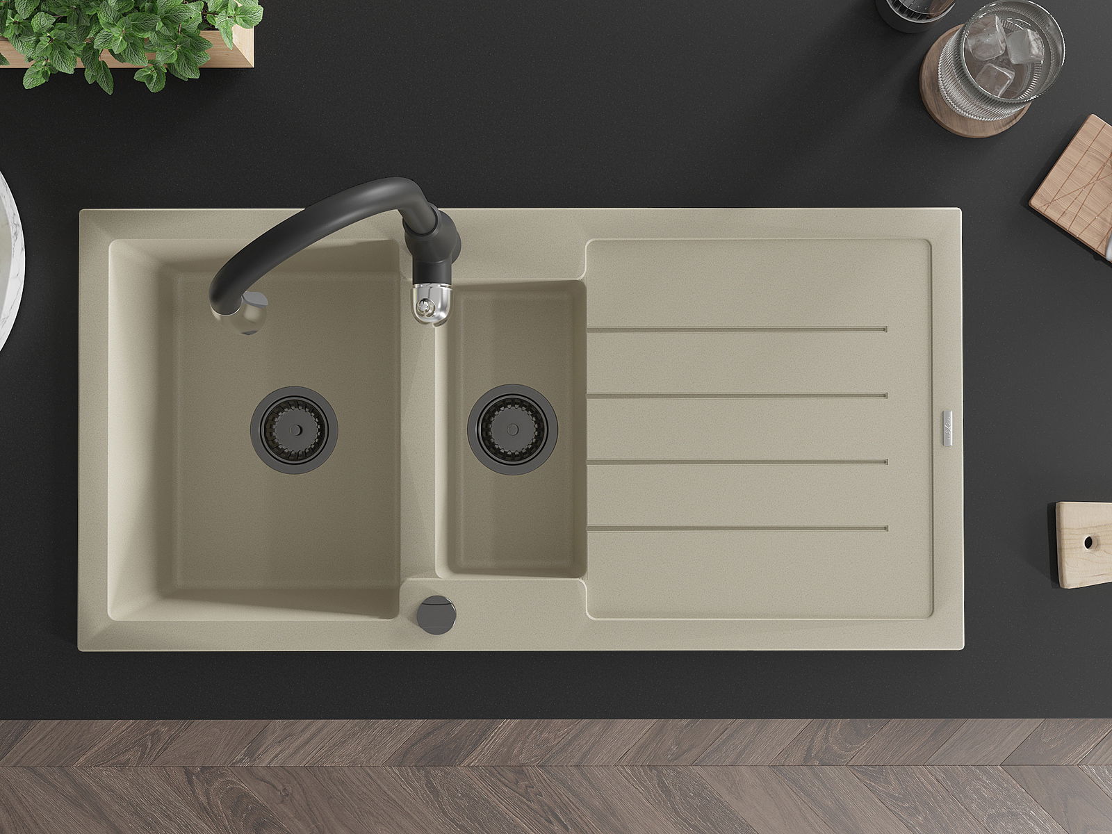 Mexen Andres Granitizlietne ar 1,5 sekcijām un noteci un virtuves jaucējkrānu Savita, bēšs - 6515-69-672601-70