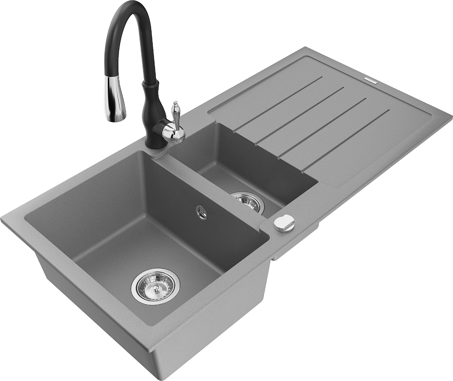 Mexen Andres granitā izlietne 1,5 nodalījumam ar noteku un virtuves krānu Savita, pelēka - 6515-71-672601-70