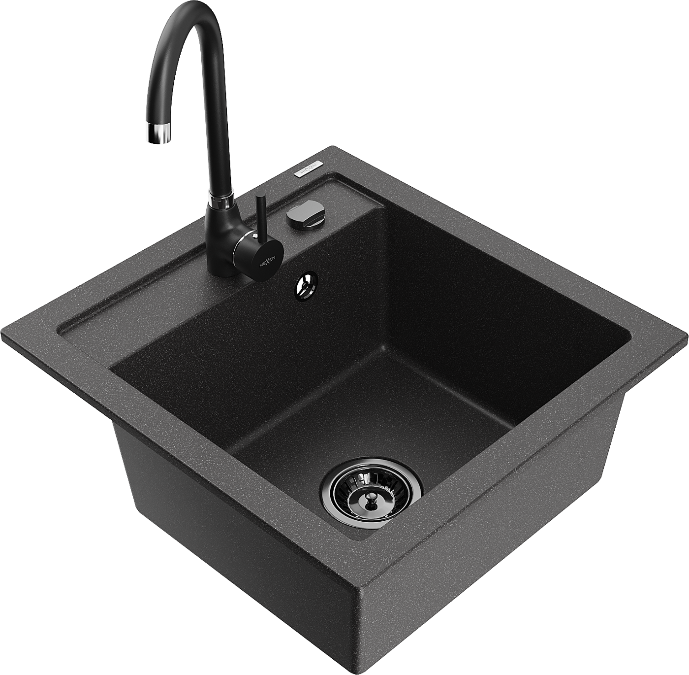 Mexen Vito granitainen izlietne ar 1 nodalījumu un virtuves jaucējkrānu Telma, melna ar punktiem - 6503-76-670200-70-B