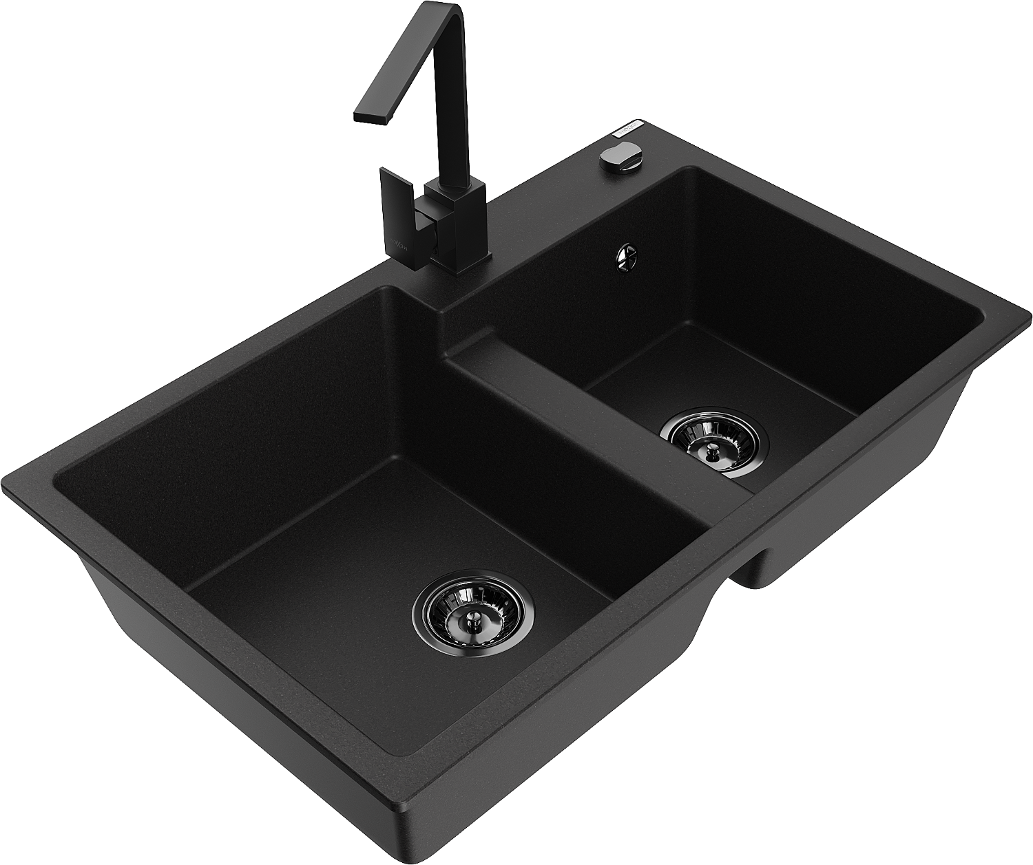 Mexen Tomas granīta divu nodalījumu virtuves izlietne ar jaucējkrānu Rita, melna - 6516-77-670300-70-B