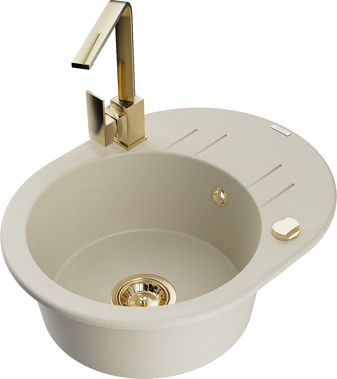 Mexen Kevin granitne izlietne ar vienu nodalījumu un notecināšanas plauktu un virtuves krānu Rita, bēša - 6517-69-670300-50