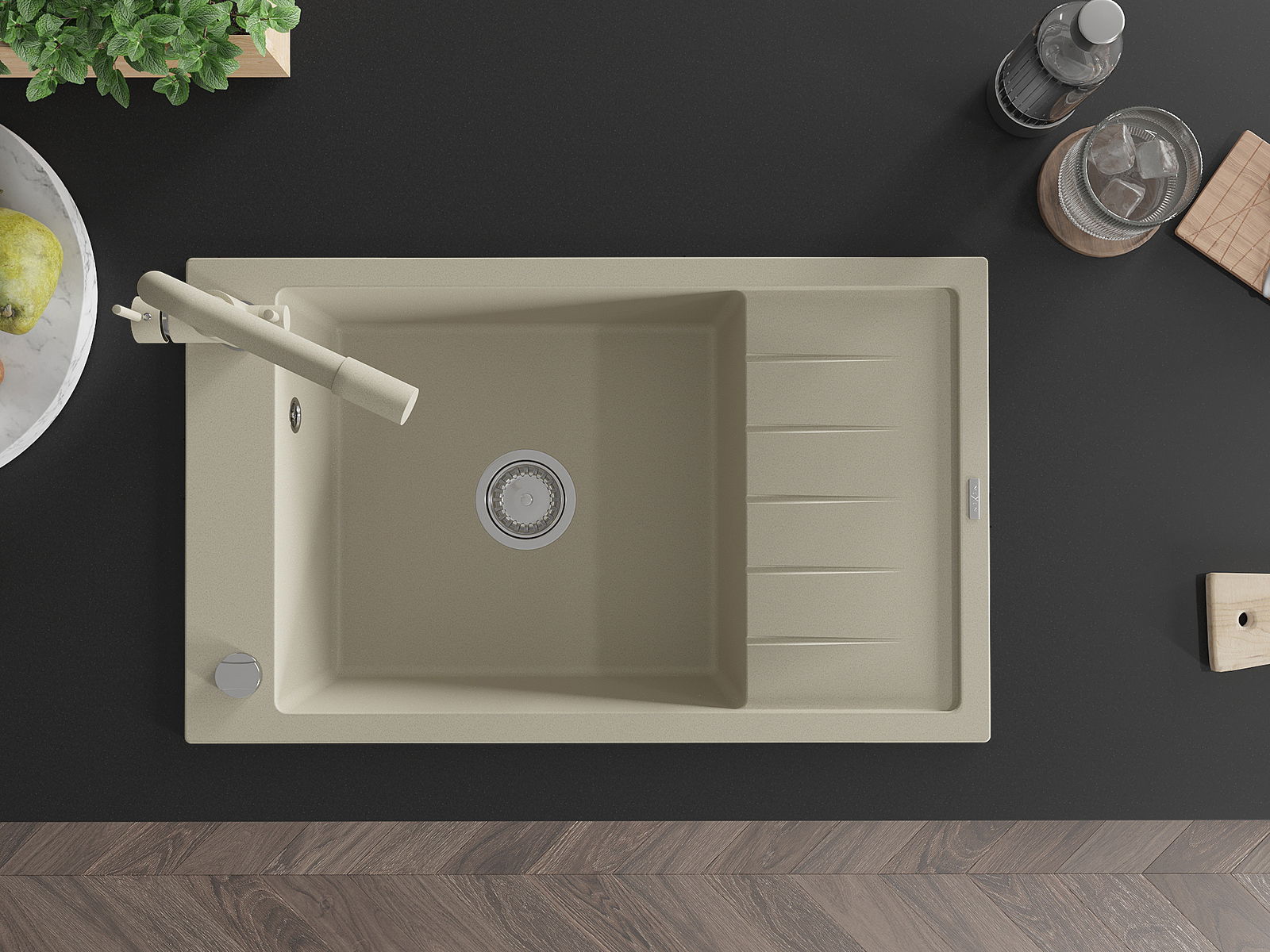 Mexen Elias granitizlietne 1 nodalījuma ar notekas un virtuves jaucējkrānu Duero, bēšs - 6511-69-671600-69