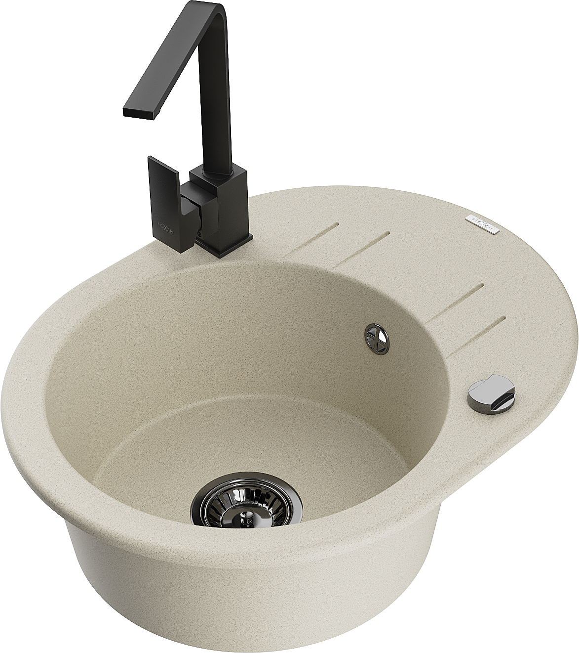 Mexen Kevin Granīta izlietne ar 1 nodalījumu un noteku, un virtuves jaucējkrānu Rita, bēšs - 6517-69-670300-70