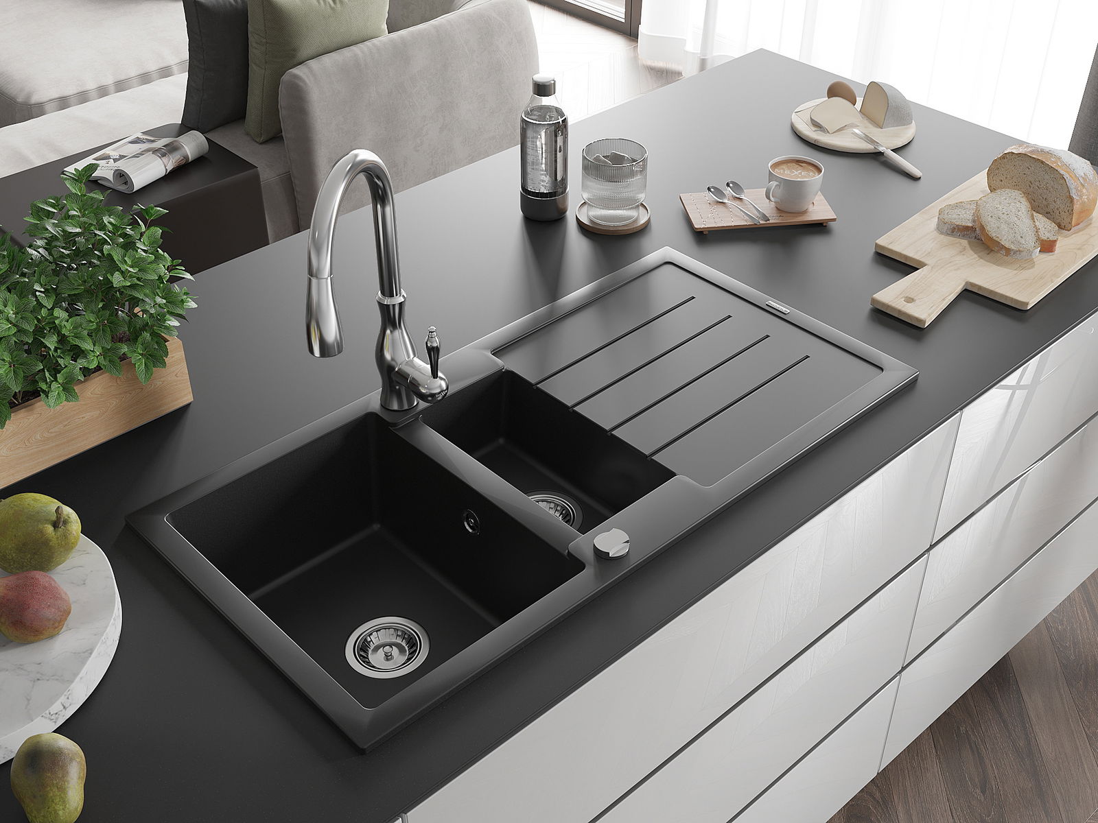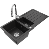 Mexen Andres grāna izlietne ar 1,5 nodalījumiem un noteces plauktu un virtuves krānu Savita, melns - 6515-77-672601-00
