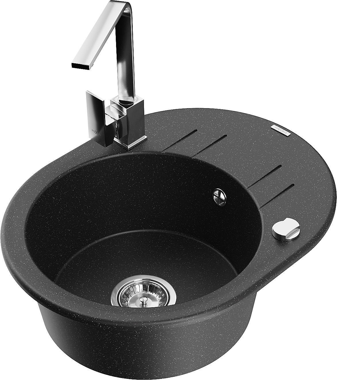 Mexen Kevin vienkameras granīta izlietne ar noteces virsmu un virtuves jaucējkrānu Rita, melna/sudraba - 6517-73-670300-00