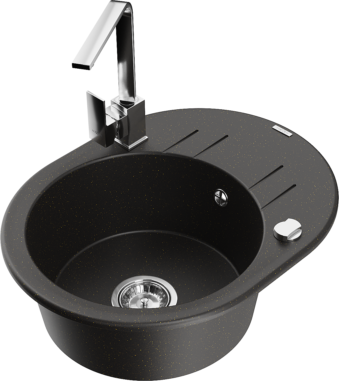Mexen Kevin granitizlietne ar vienu nodalījumu, ar noteces vietu un virtuves jaucējkrānu Rita, melna/zeltaina metāliska