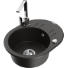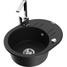 Mexen Kevin vienkameras granīta izlietne ar notecētāju un virtuves jaucējkrānu Rita, melna ar plankumiem - 6517-76-670300-00