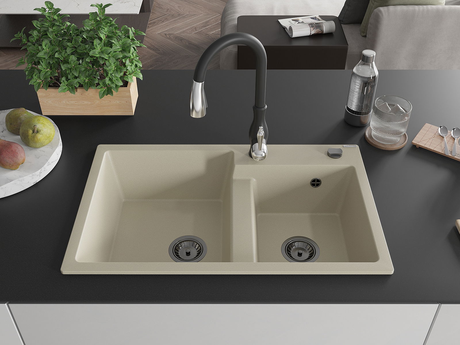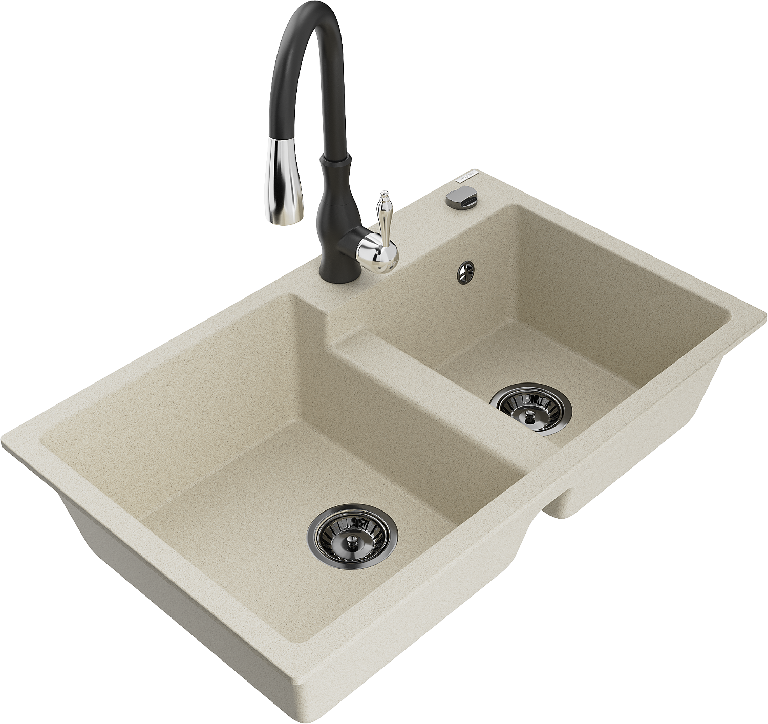 Mexen Tomas granitizlietne 2 nodaljeta ar virtuves jaucējkrānu Savita, bēšs - 6516-69-672601-70