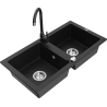 Mexen Mario divpadsmitā akmens granīta divkameru izlietne ar Telma virtuves jaucējkrānu, melna ar plankumiem - 6504-76-670200-70