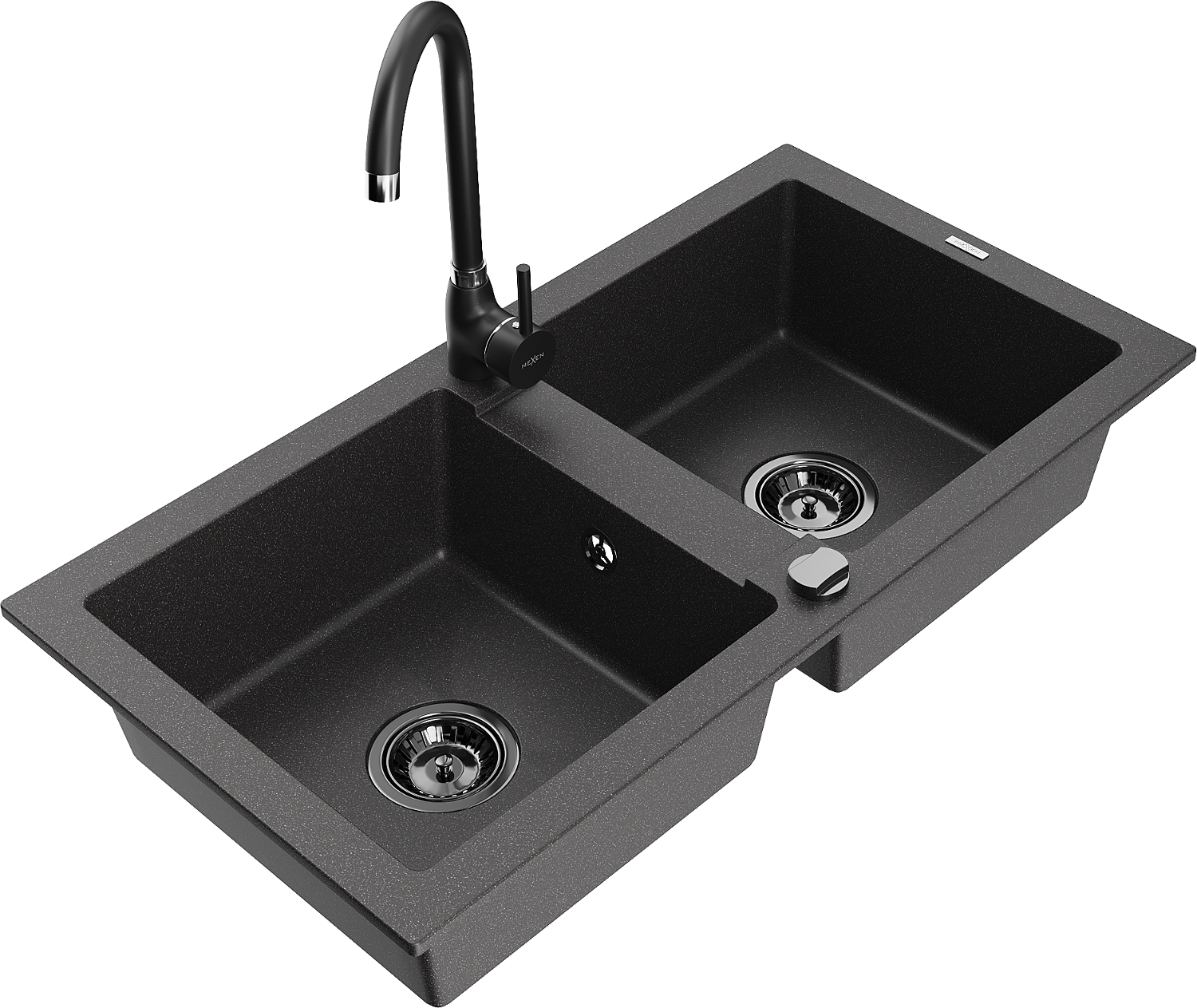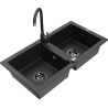Mexen Mario granīta virtuves izlietne ar 2 nodalījumiem un Telma jaucējkrānu, melna ar punktiem - 6504-76-670200-70-B