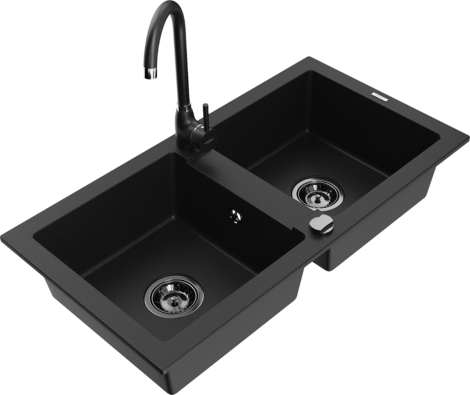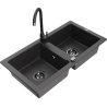 Mexen Mario granitam izlietne ar 2 nodalījumiem un Telma virtuves maisītāju, melna - 6504-77-670200-70-B