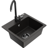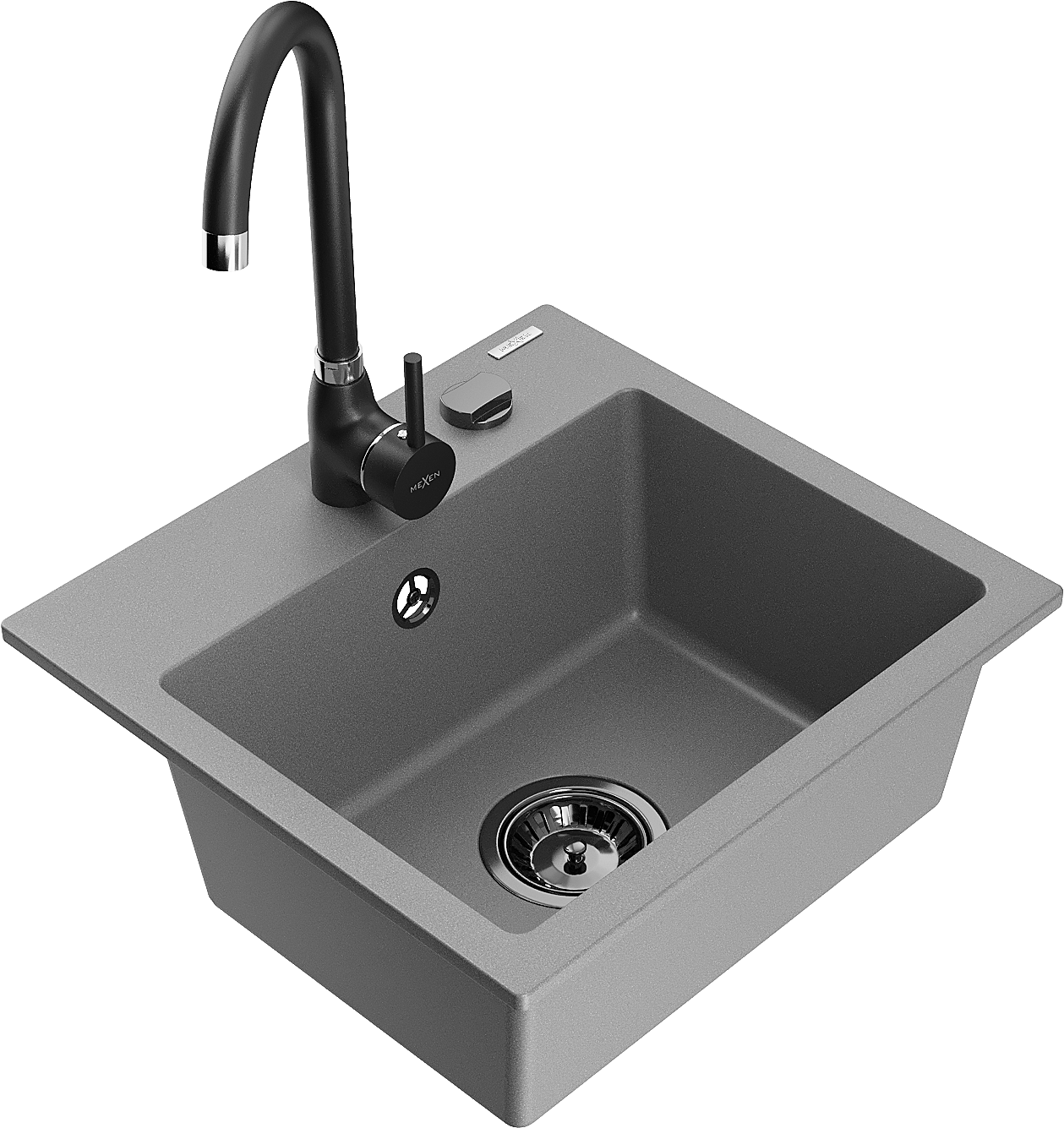 Mexen Milo granit izlietne ar 1 nodalījumu un virtuves jaucējkrānu Telma, pelēka - 6505-71-670200-70-B