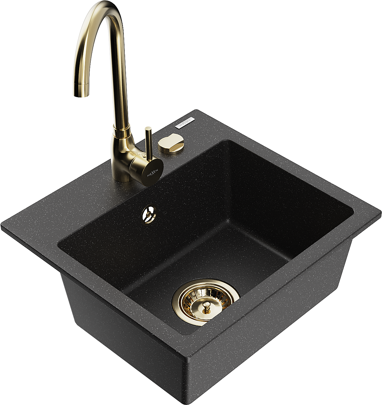 Mexen Milo granitā izlietne ar vienu nodalījumu un virtuves jaucējkrānu Telma, melna/sudraba - 6505-73-670200-50