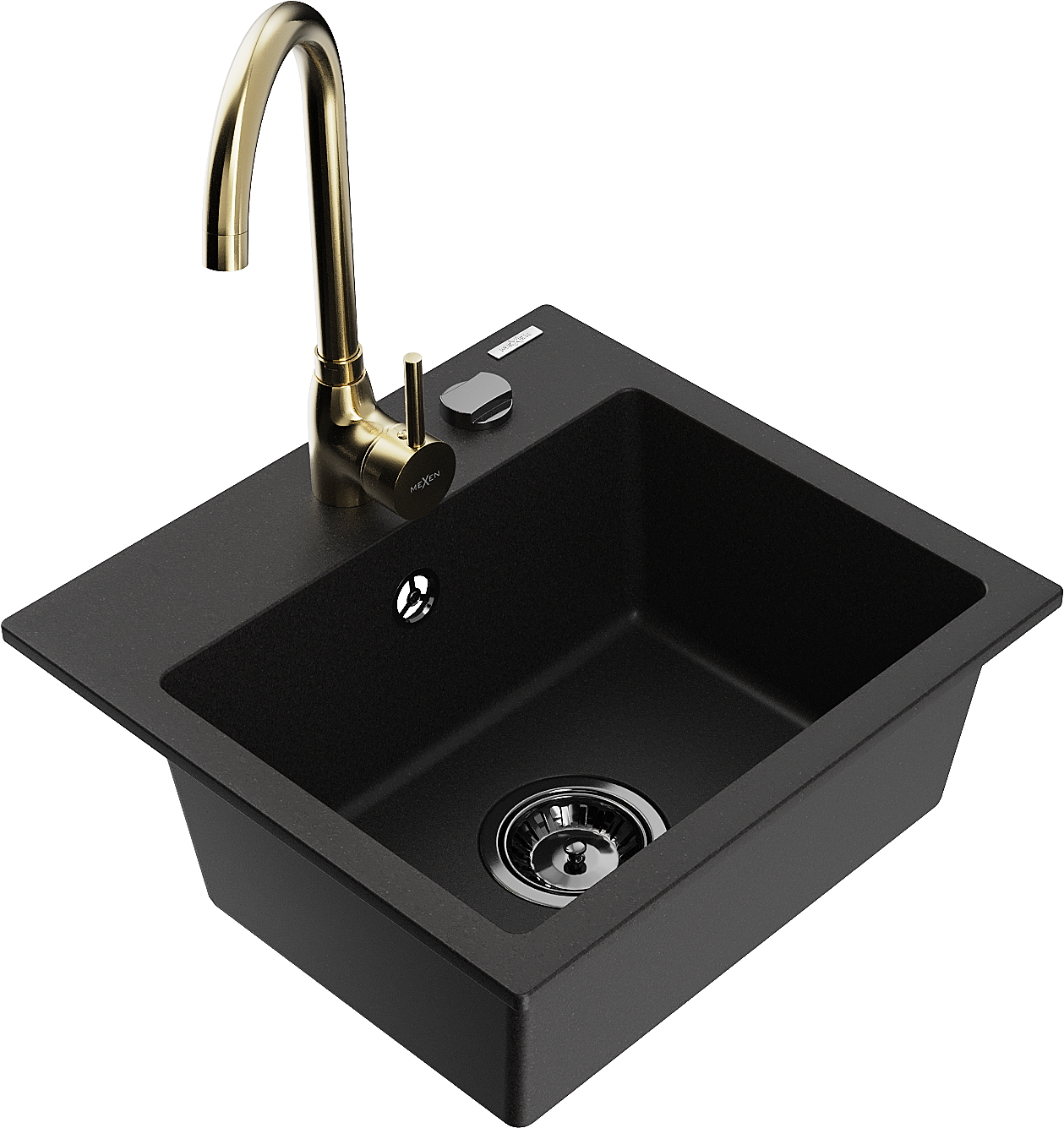 Mexen Milo granīta izlietne ar 1 nodalījumu un virtuves jaucējkrānu Telma, melna - 6505-77-670200-50-B