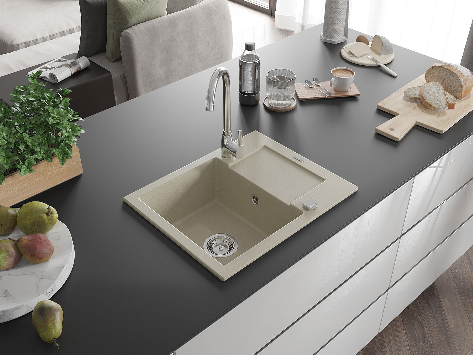 Mexen Enzo granitizlietne viena nodalījuma ar noteci un virtuves jaucējkrānu Telma, bēšs - 6506-69-670200-00