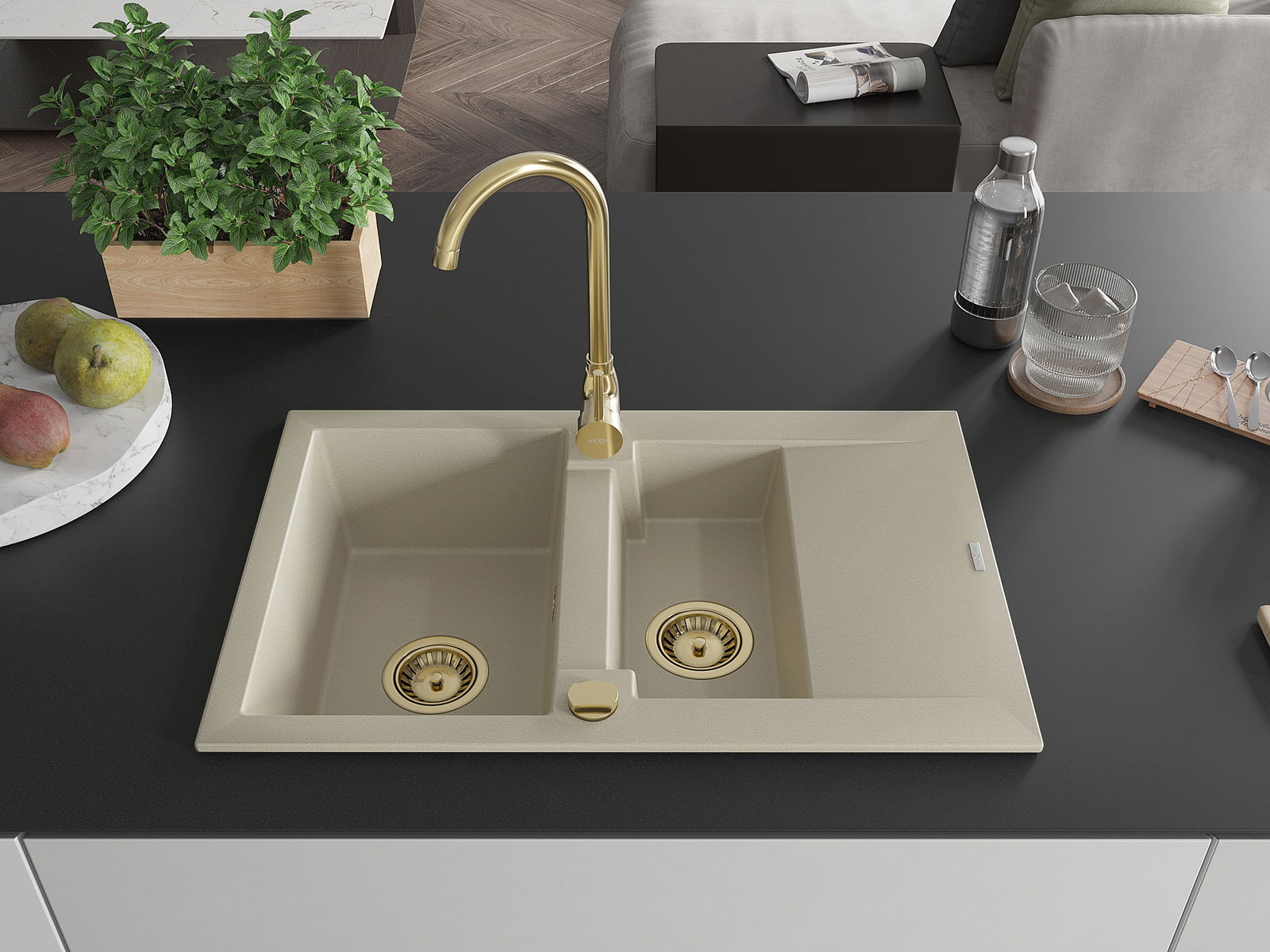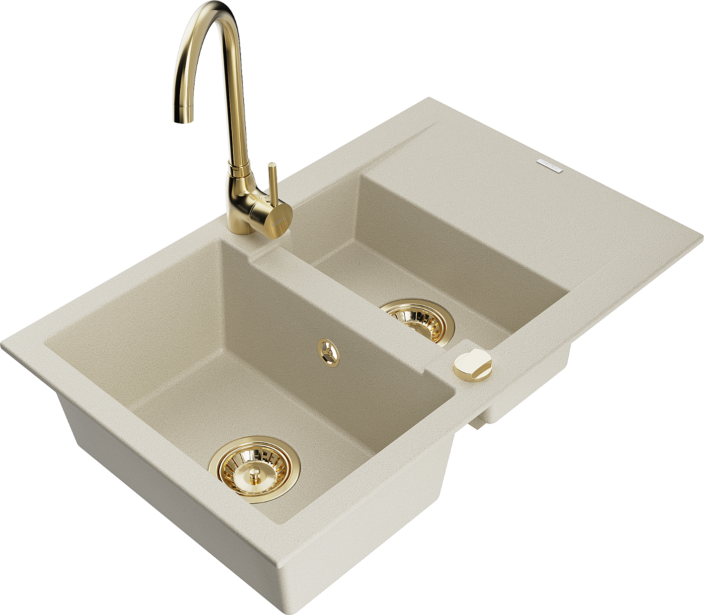 Mexen Gaspar granit izlietne ar 1,5 nodalījumu un noteces paplāksni un virtuves jaucējkrānu Telma, bēšs - 6507-69-670200-50