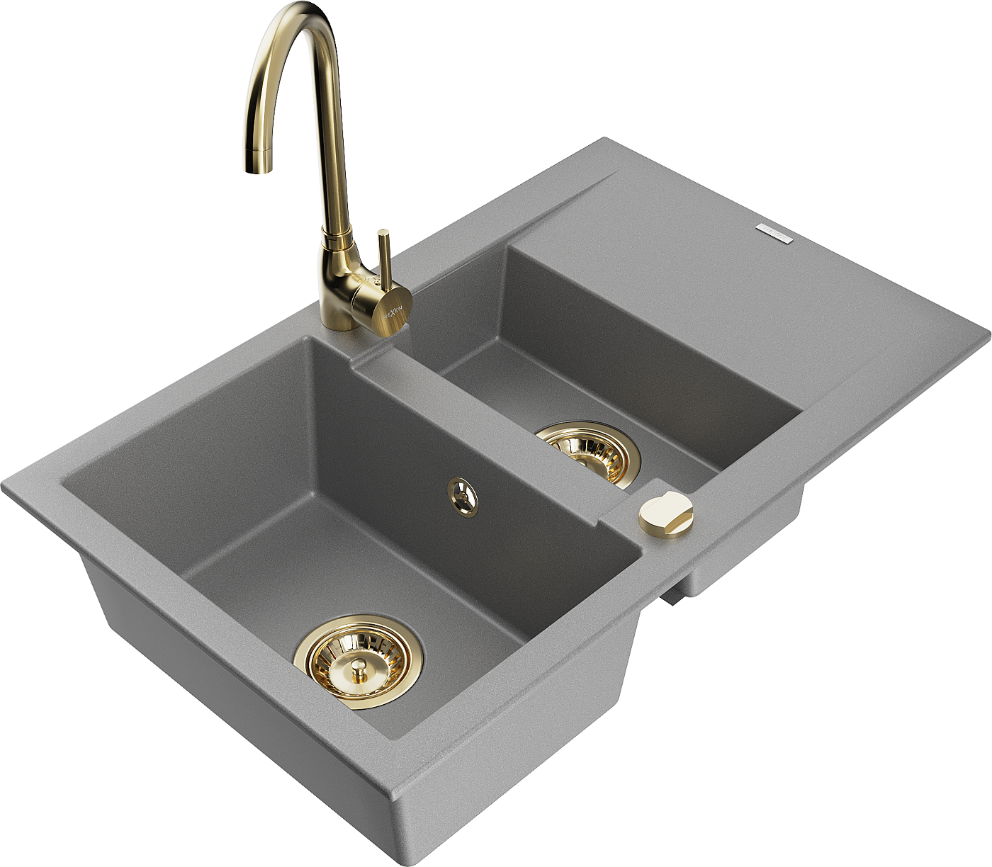 Mexen Gaspar granīta izlietne 1,5 nodalījumu ar noteces vietu un virtuves jaucējkrānu Telma, pelēka - 6507-71-670200-50
