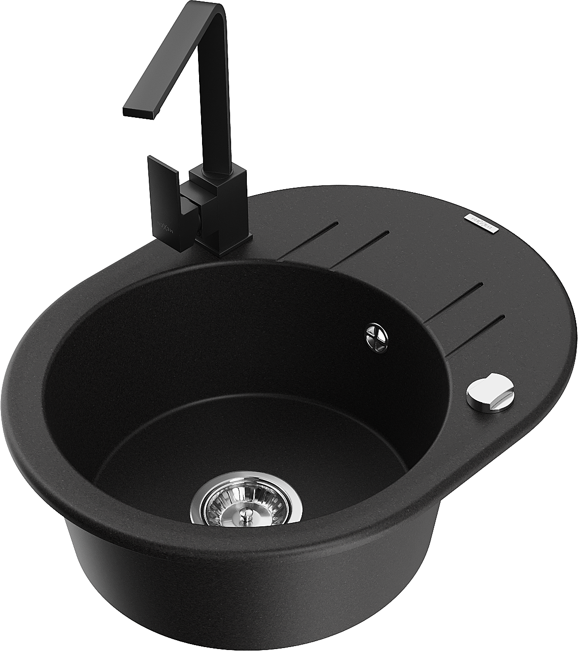 Mexen Kevin 1-kameras granīta izlietne ar noteku un virtuves jaucējkrānu Rita, melna - 6517-77-670300-70