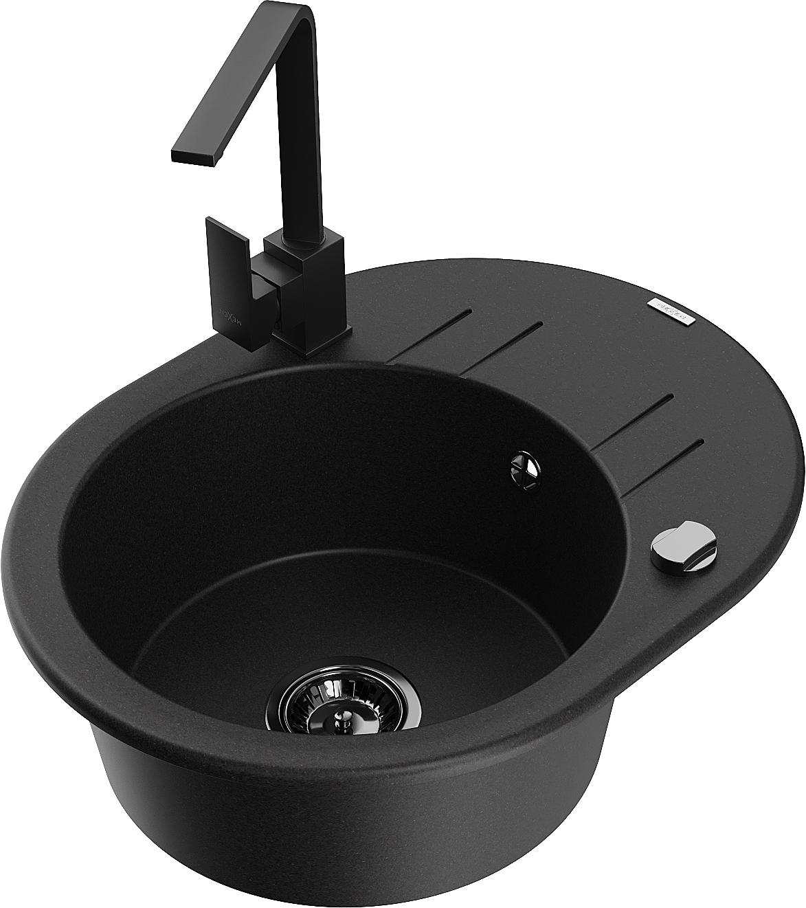 Mexen Kevin granitais izlietne ar vienu nodalījumu un noteces zonu un virtuves jaucējkrānu Rita, melna - 6517-77-670300-70-B