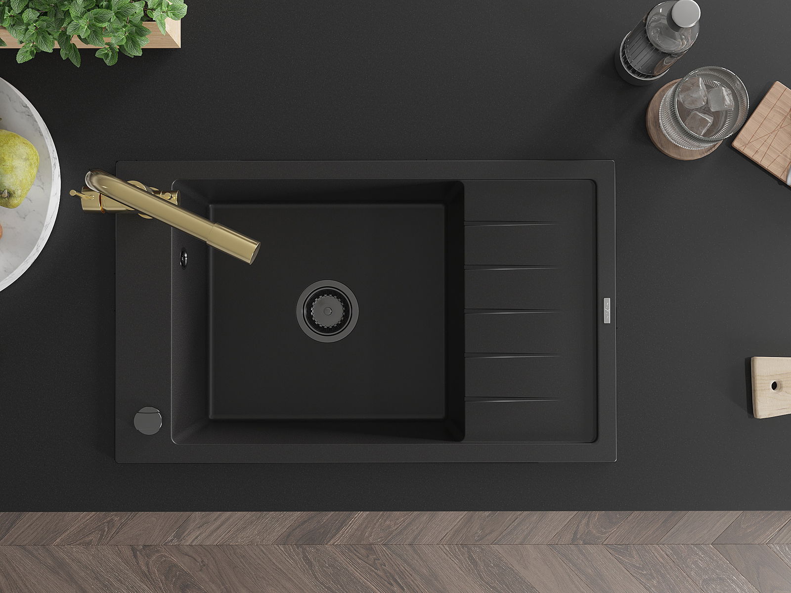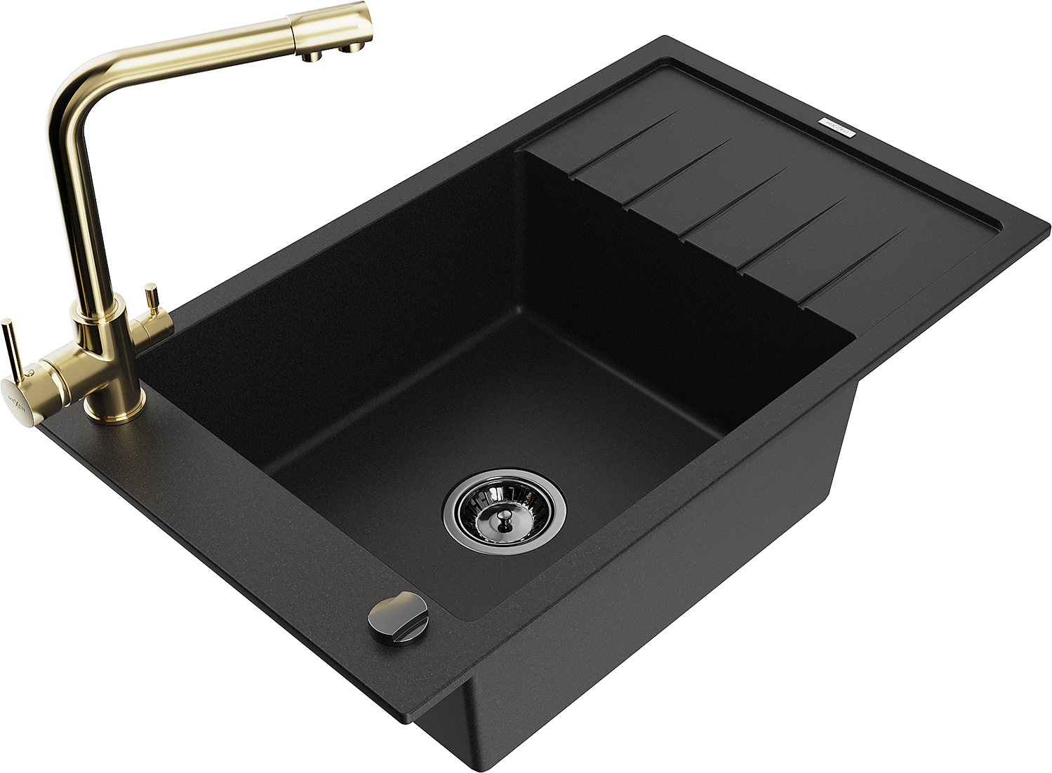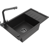Mexen Elias granitizlietne 1-kameru izlietne ar noteces plati un virtuves jaucējkrānu Duero, melns - 6511-77-671600-50-B