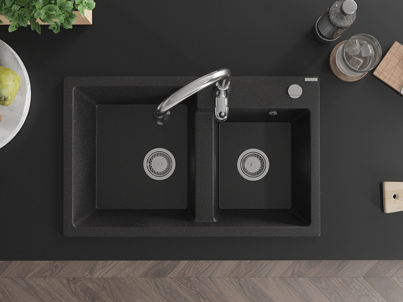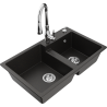 Mexen Tomas granitais divu nodalījumu izlietne ar Virtuves Jaucējkrānu Savita, melns/sudrabainais metālisks - 6516-73-672601-00