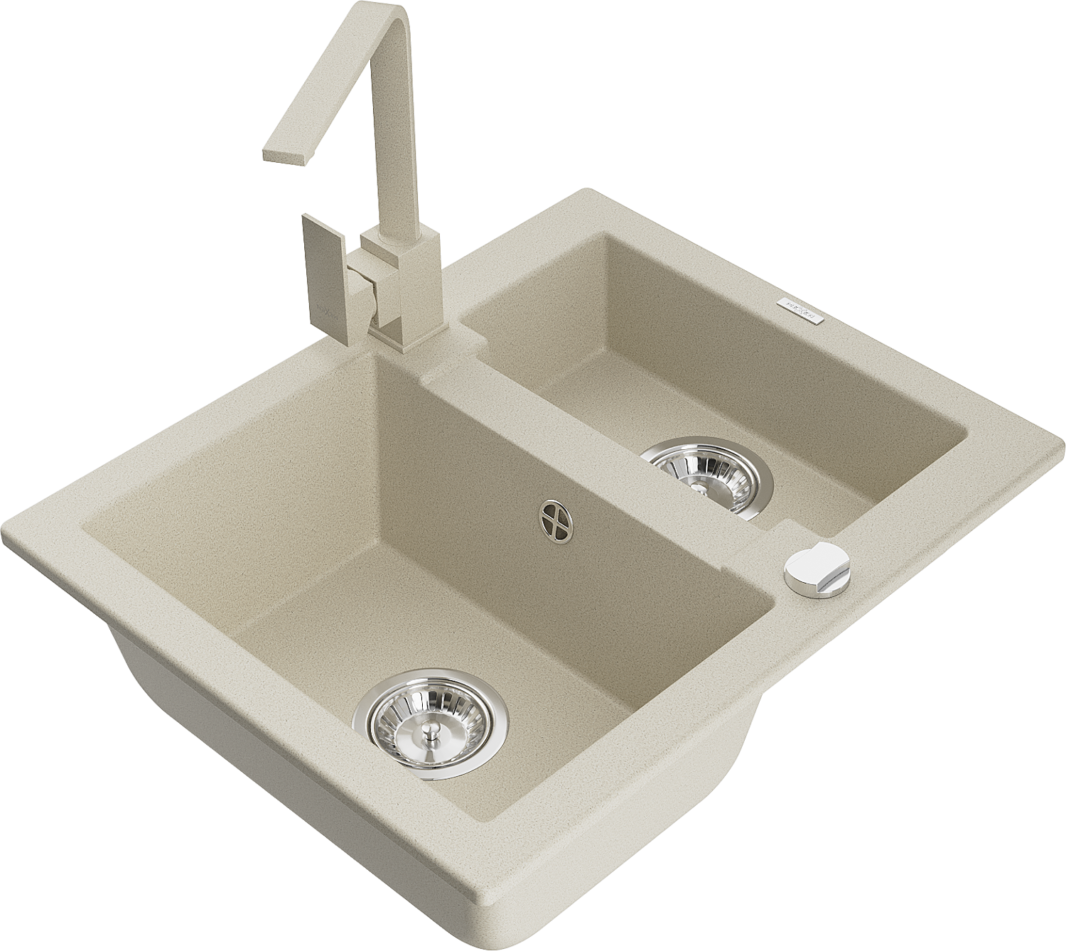 Mexen Carlos granitizlietne 1,5 nodalījumu ar virtuves jaucējkrānu Rita, bēšs - 6518-69-670300-69