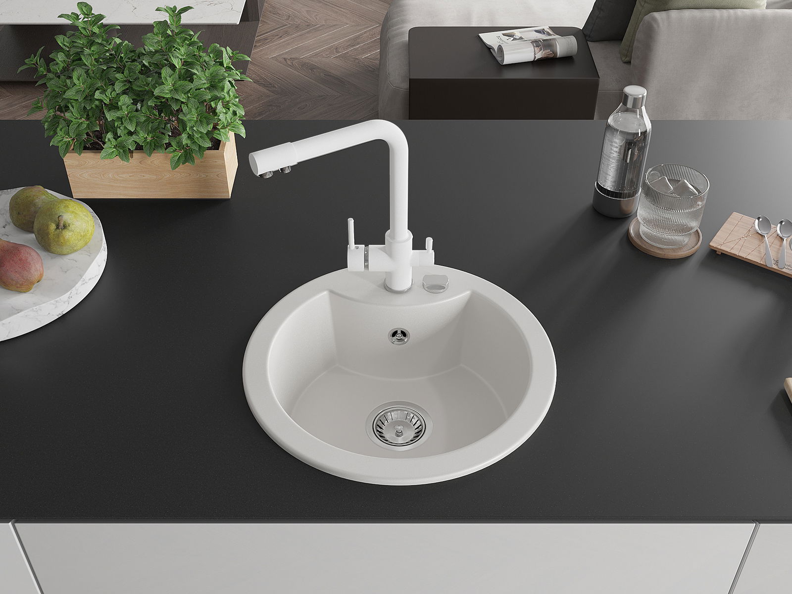 Izlietnes virsma ir izturīga pret traipiem un krāsas izmaiņām, tāpēc to ir viegli uzturēt tīru un tā saglabā savu krāsu ilgu lietošanas laiku. Estētiski un praktiski papildina jebkuru virtuvi.