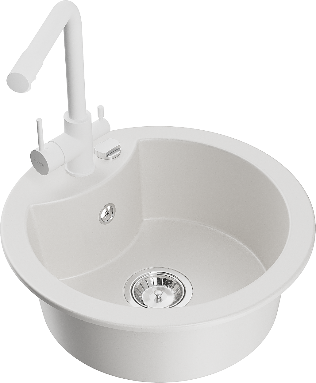 Mexen Diego 1-istabas granīta izlietne ar virtuves jaucējkrānu Duero, balta - 6512-20-671600-20
