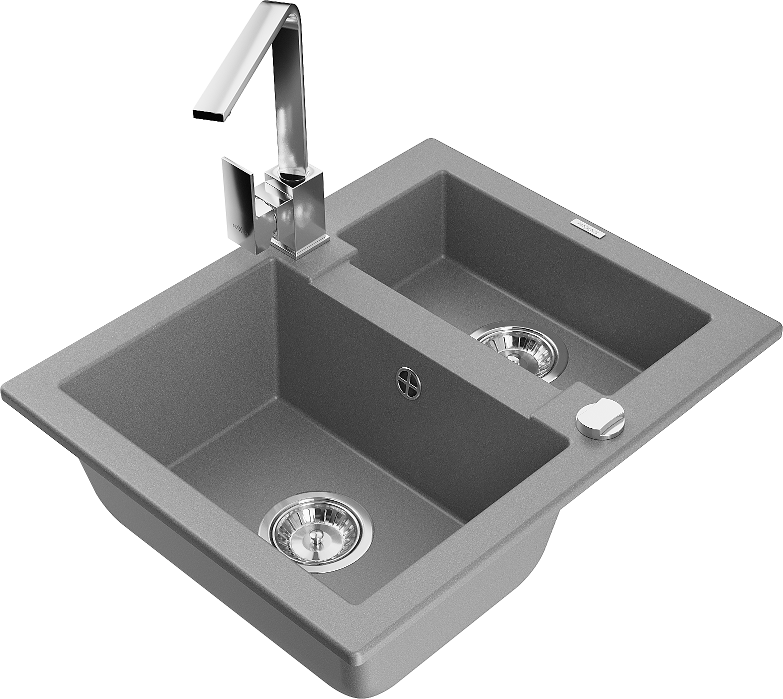 Mexen Carlos Granitā izlietne ar 1,5 nodalījumiem un Rita virtuves jaucējkrānu, pelēka - 6518-71-670300-00