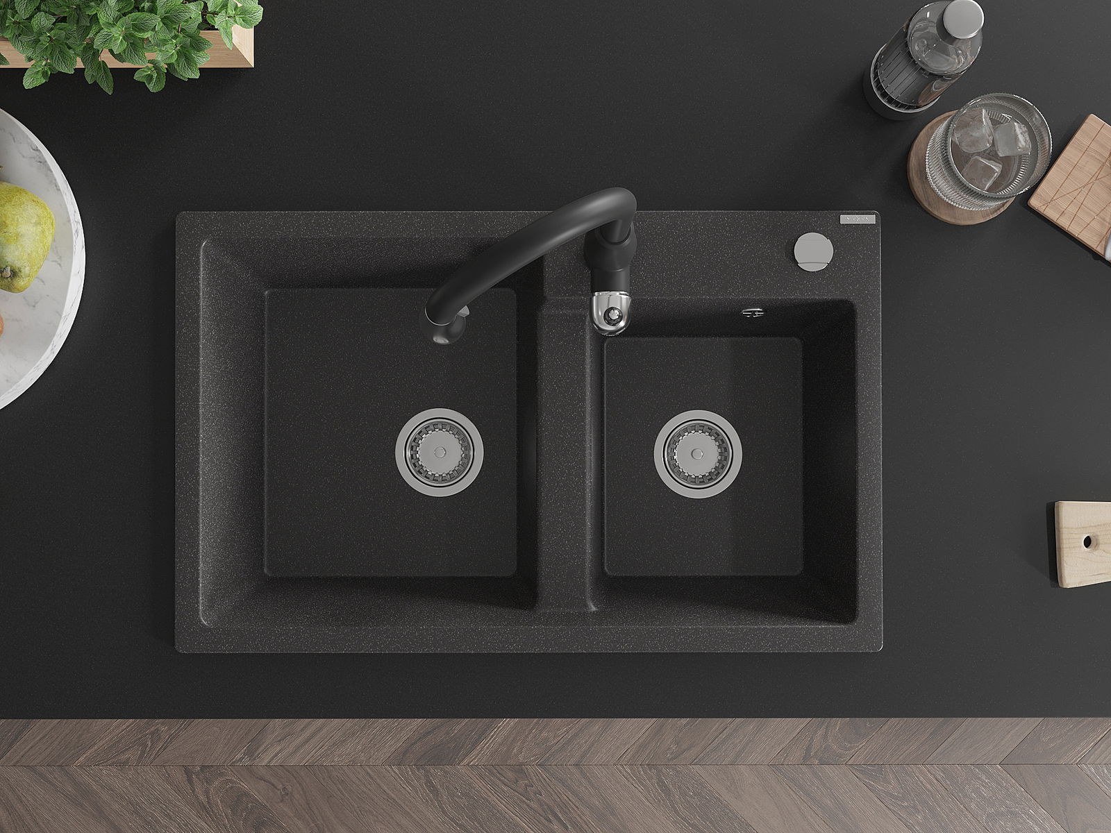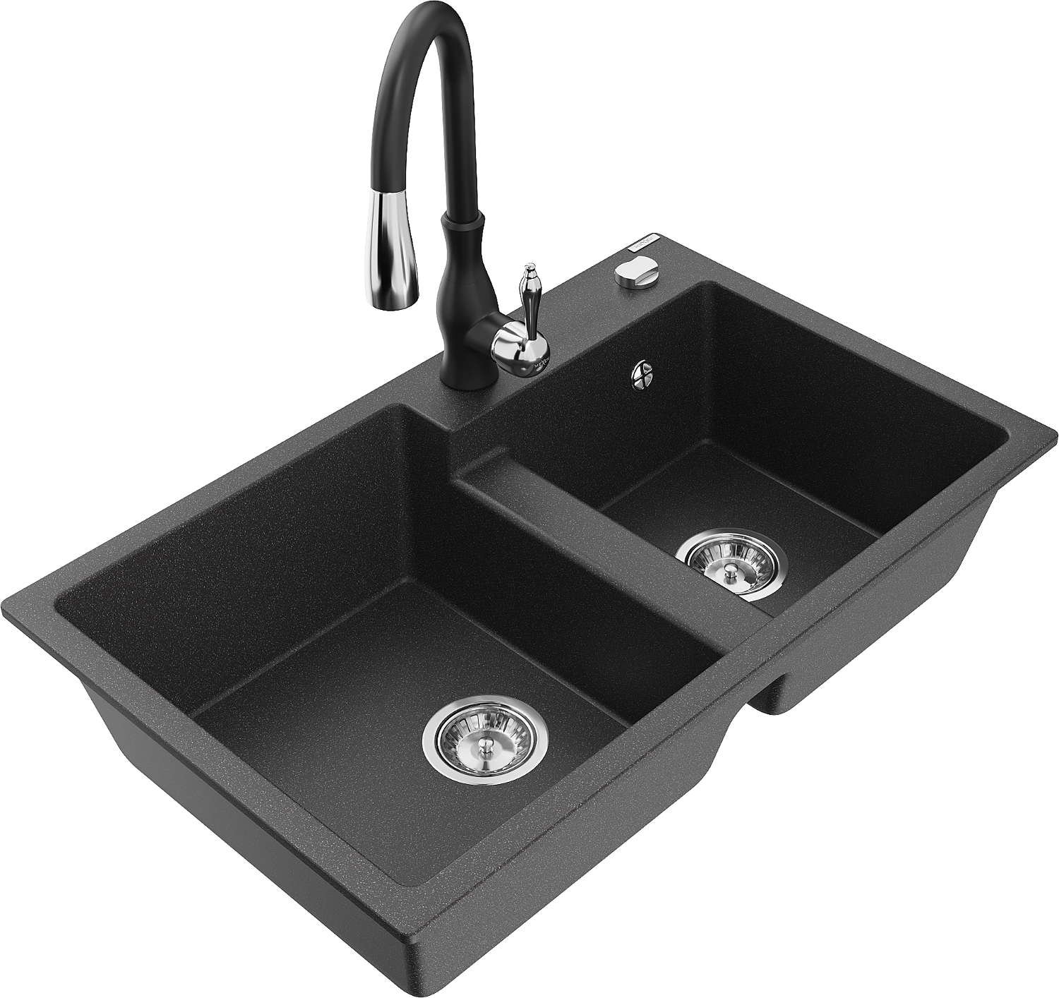 Mexen Tomas 2 nodalītņu granīta izlietne ar Savita virtuves jaucējkrānu, melna šķelta - 6516-76-672601-70