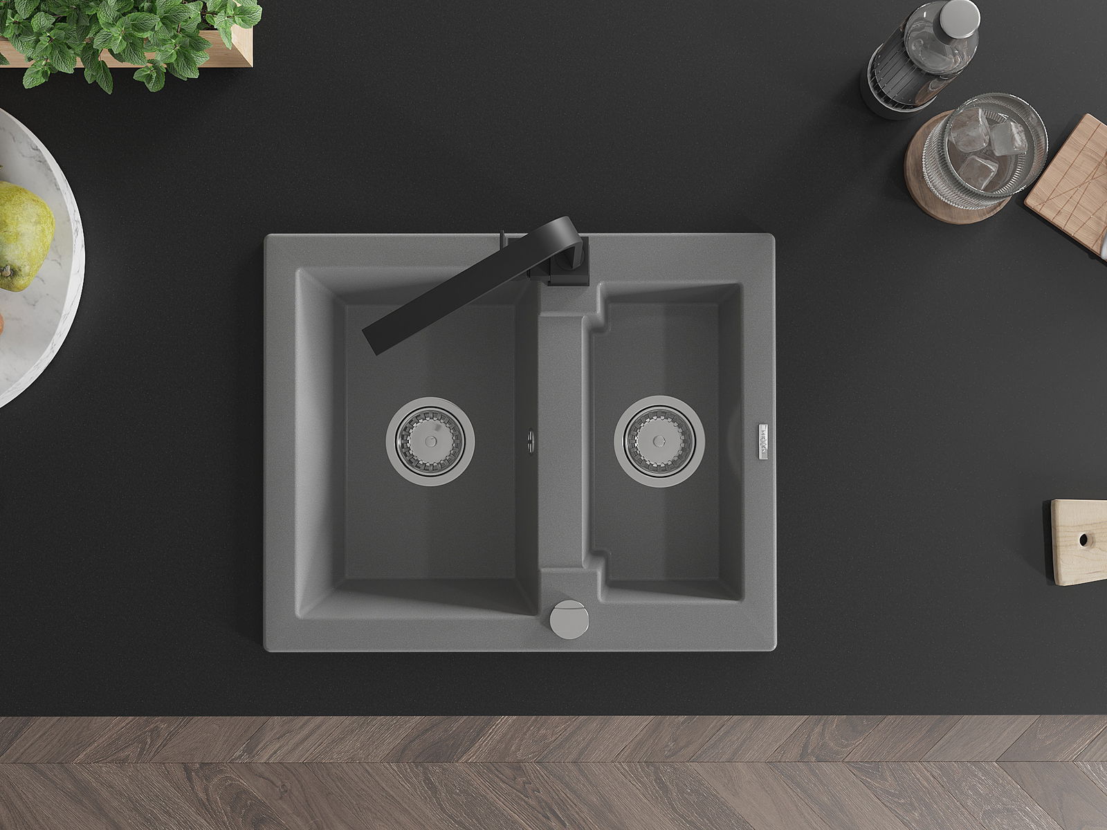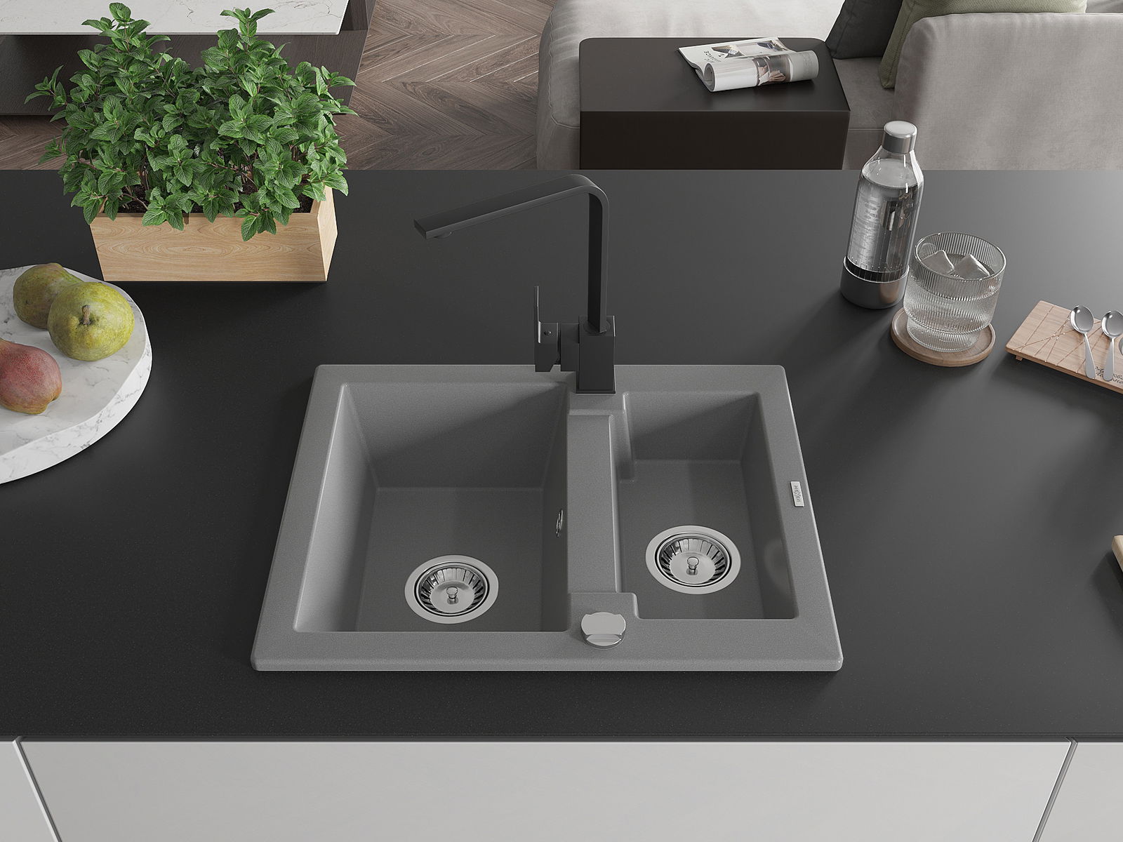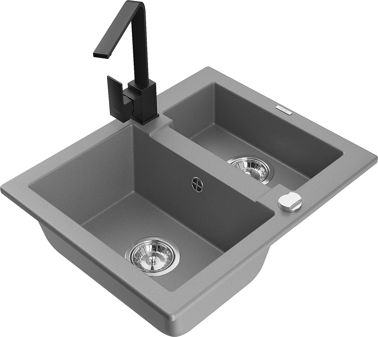 Mexen Carlos granitizlietne izlietne ar 1,5 nodalījumu un virtuves jaucējkrānu Rita, pelēka - 6518-71-670300-70