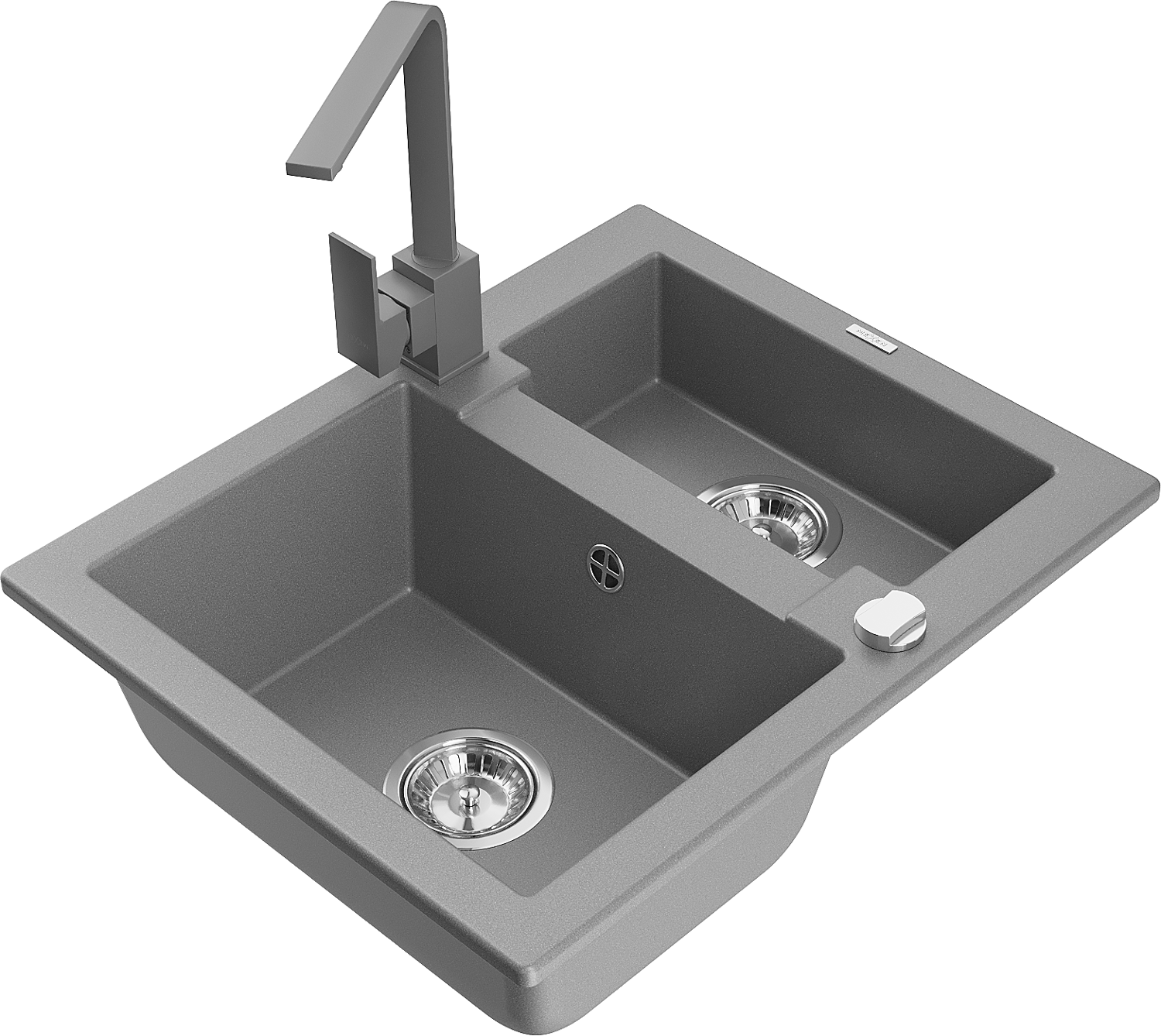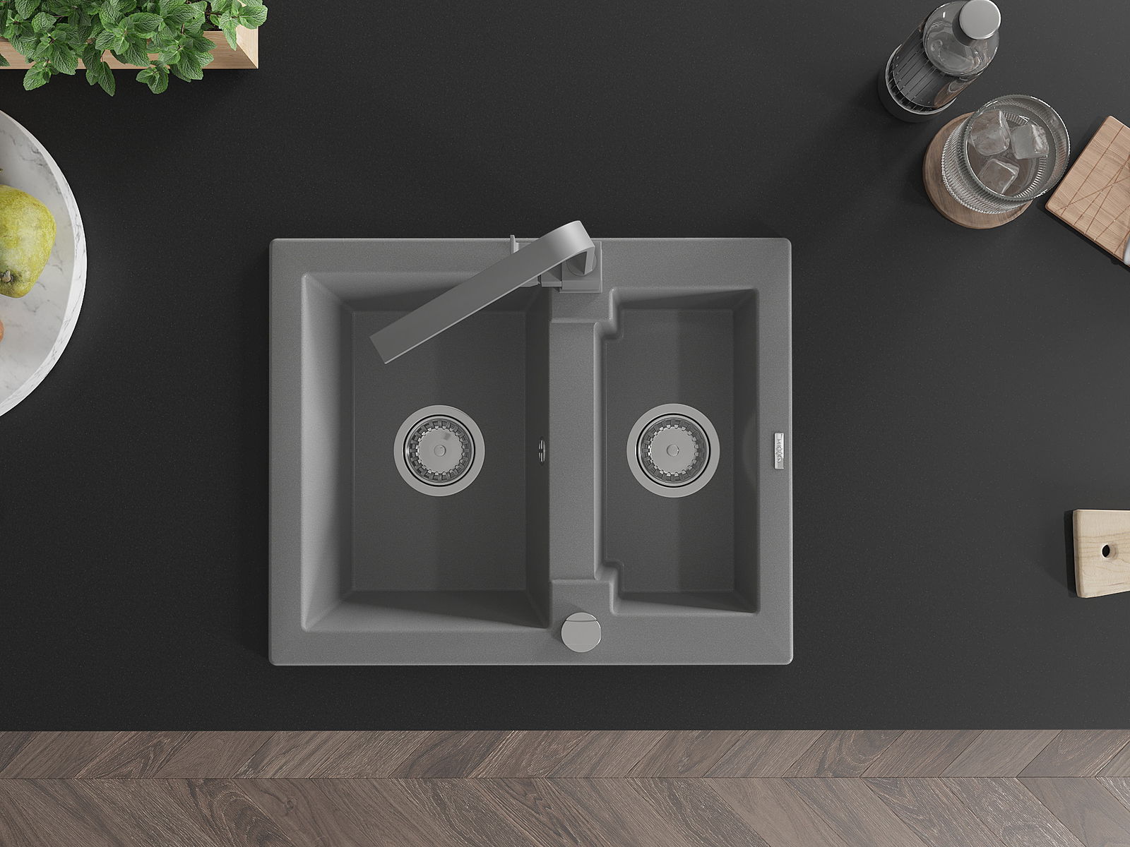 Mexen Carlos granitizlietne izlietne ar 1,5 kameru un virtuves krānu Rita, pelēka - 6518-71-670300-71