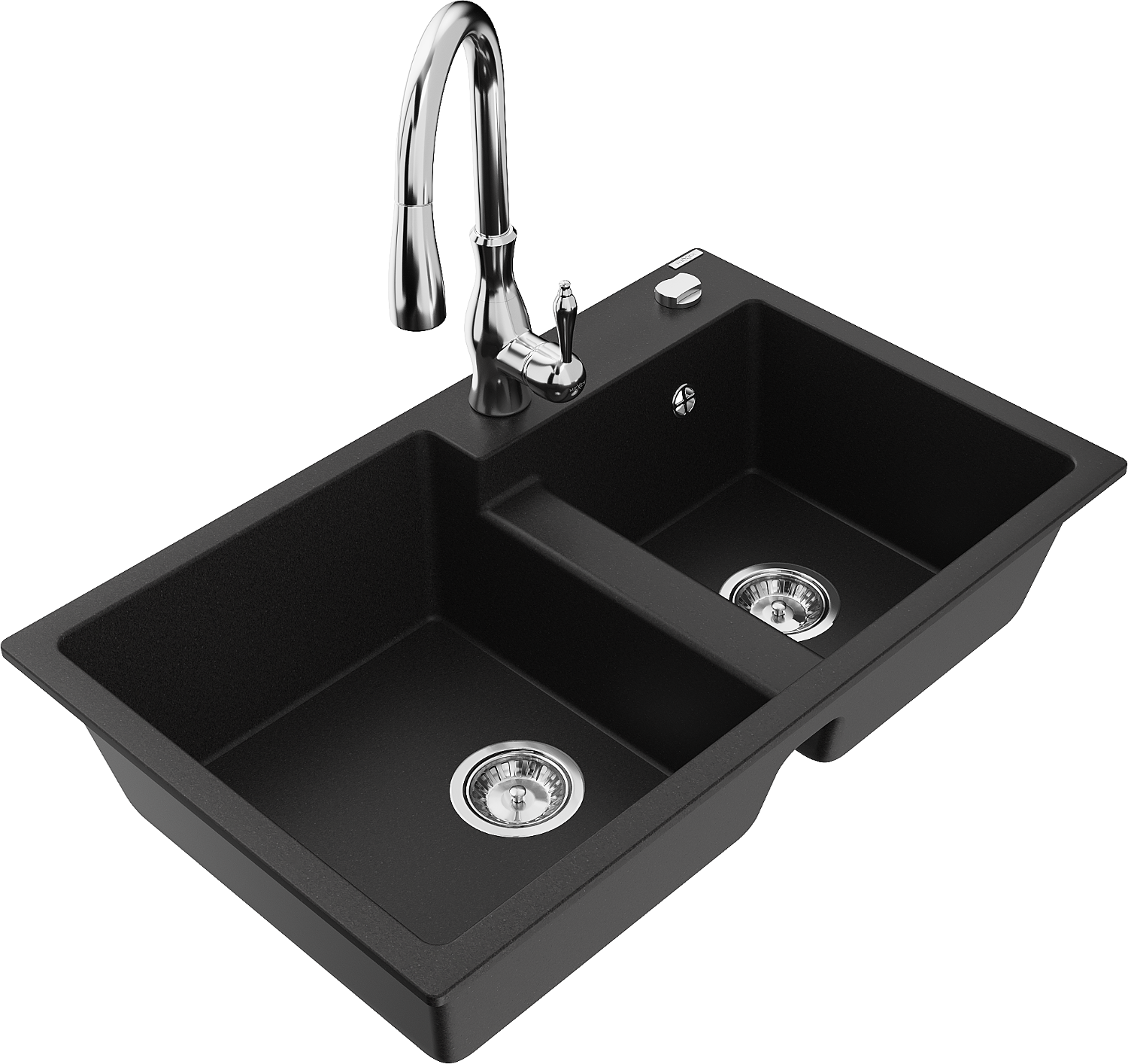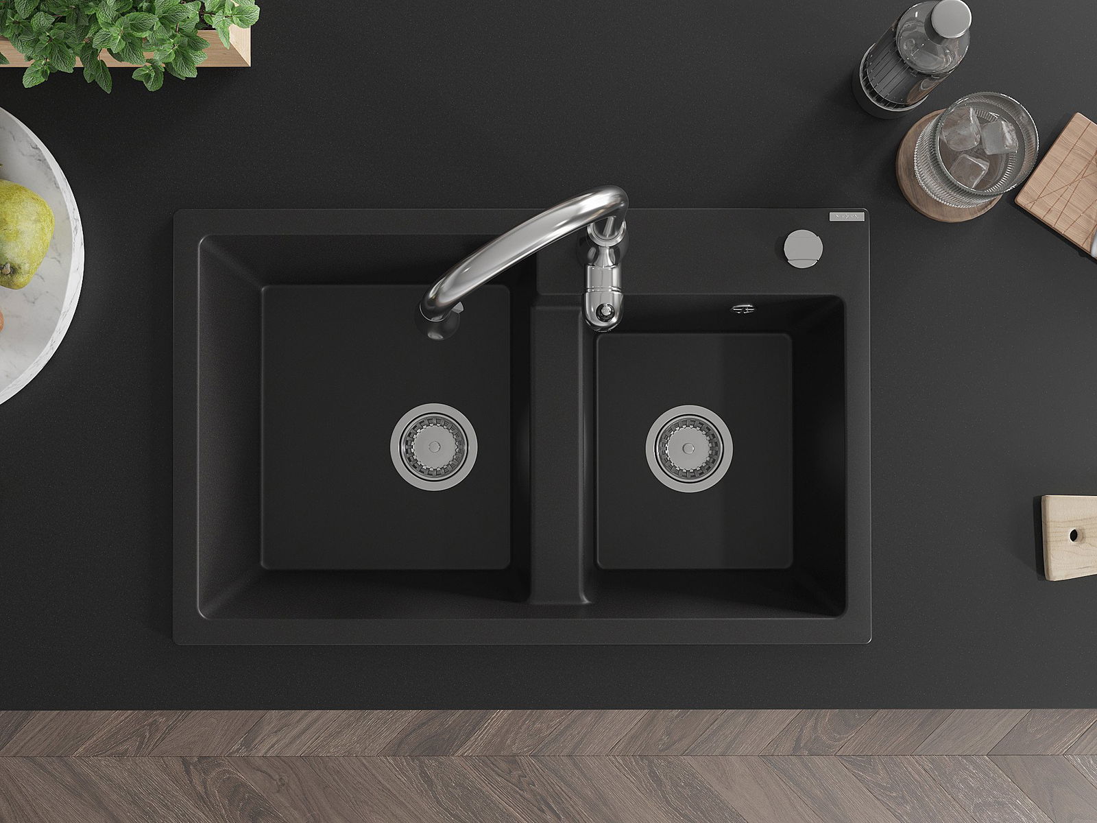 Mexen Tomas granitizlietne ar 2 nodalījumiem un virtuves maisītāju Savita, melna - 6516-77-672601-00