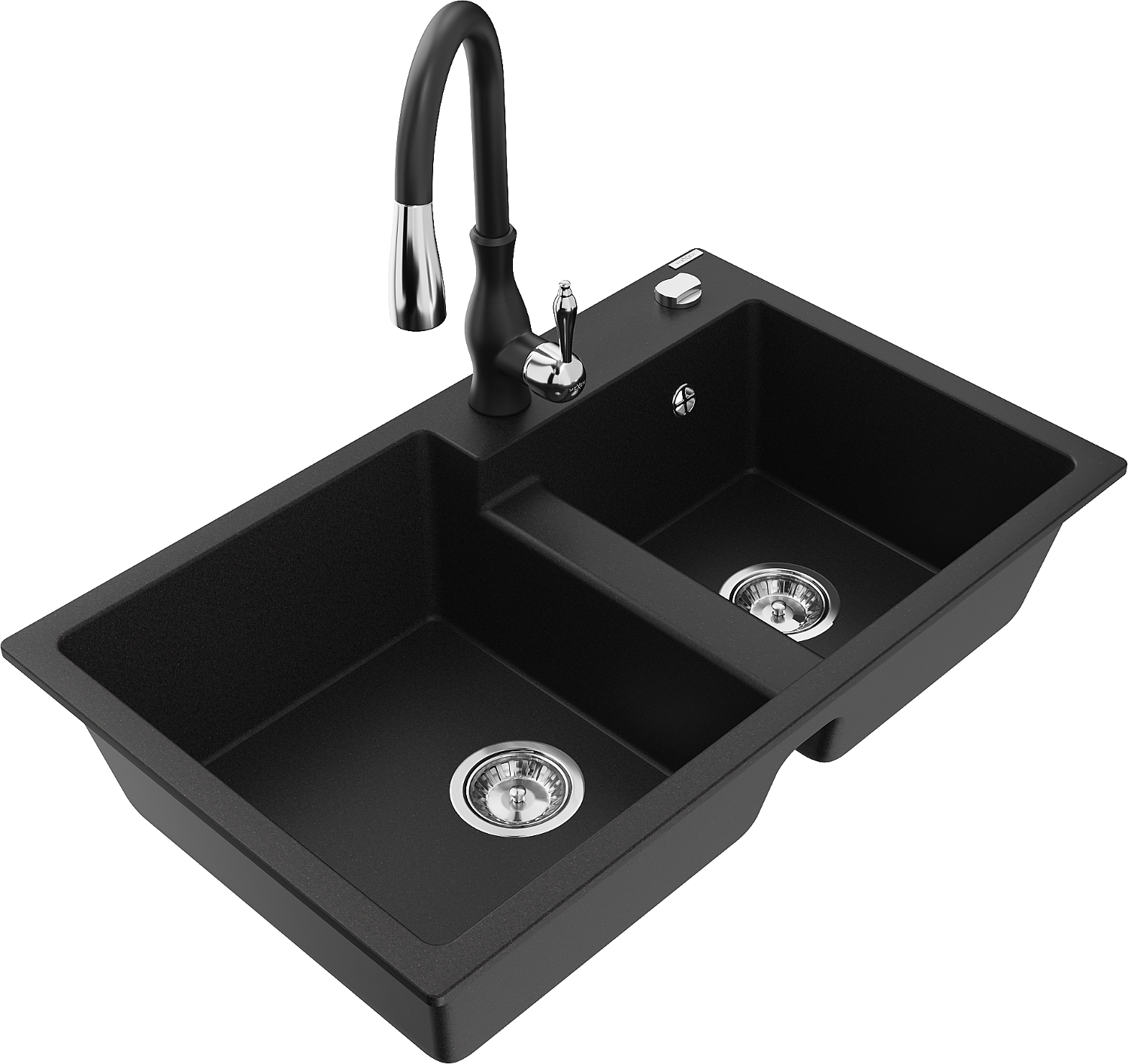 Mexen Tomas granit izlietne ar divām kamerām ar virtuves jaucējkrānu Savita, melna - 6516-77-672601-70