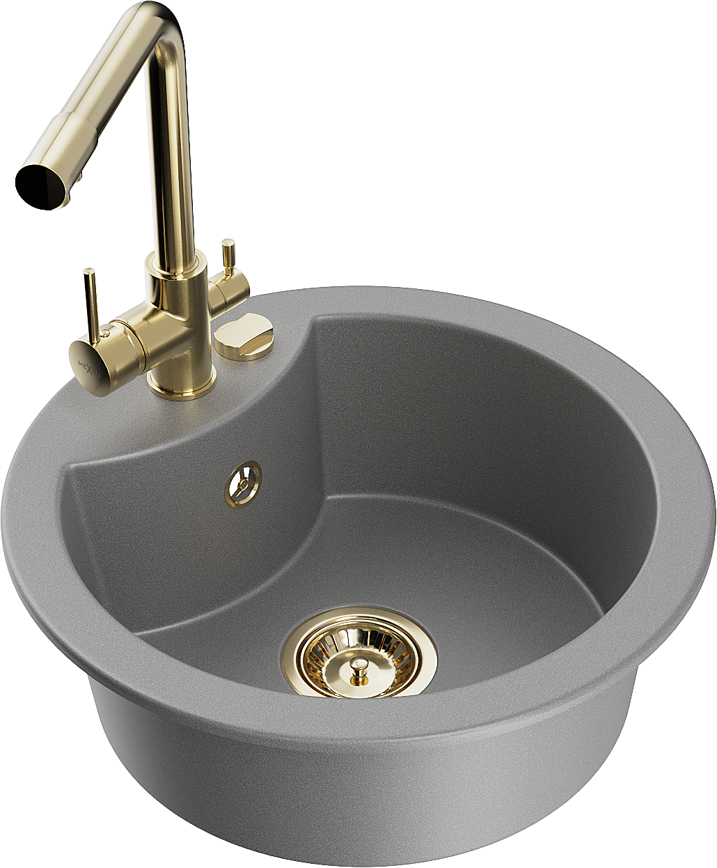 Mexen Diego granit izlietne ar vienu nodalījumu un virtuves krānu Duero, pelēks - 6512-71-671600-50