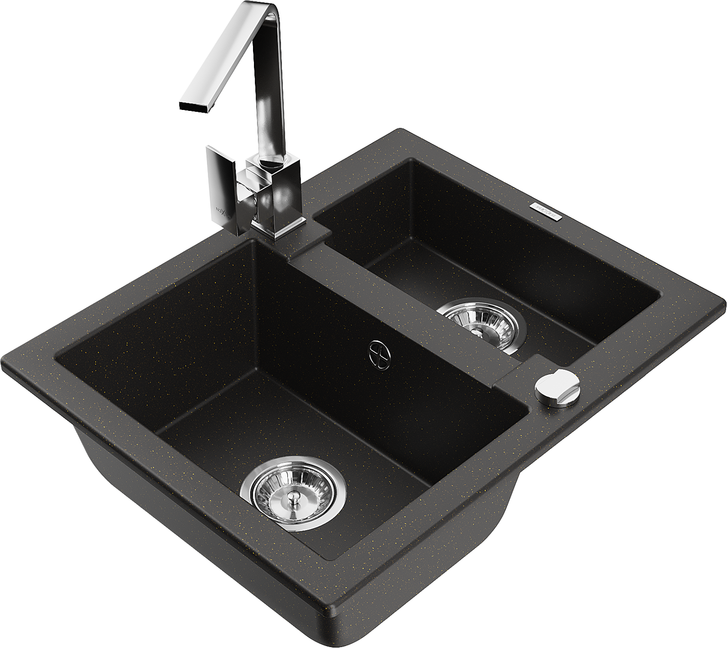 Mexen Carlos granitīzlietne ar 1,5 nodalījumiem un virtuves jaucējkrānu Rita, melna/zeltains metālisks - 6518-75-670300-00