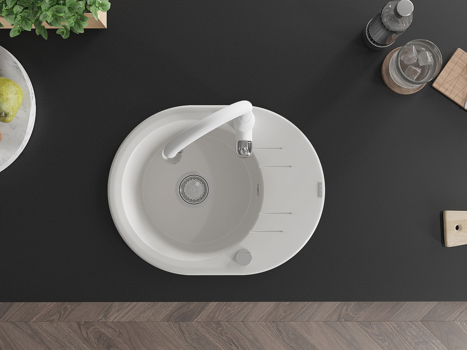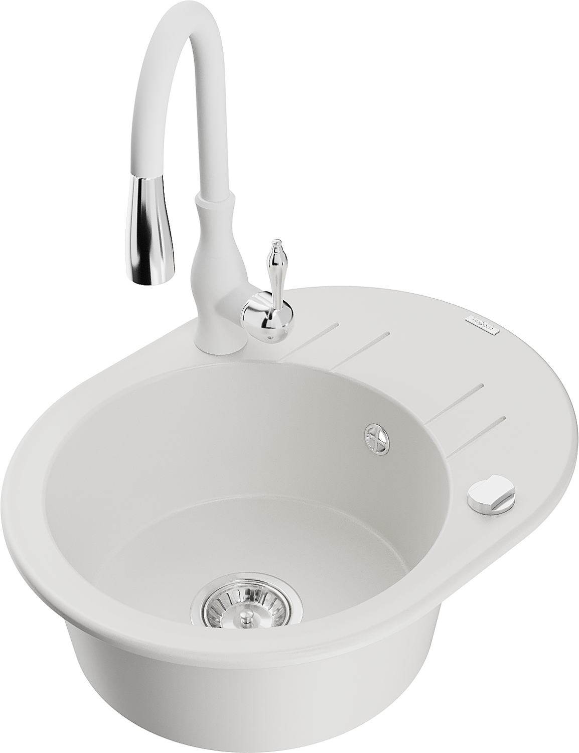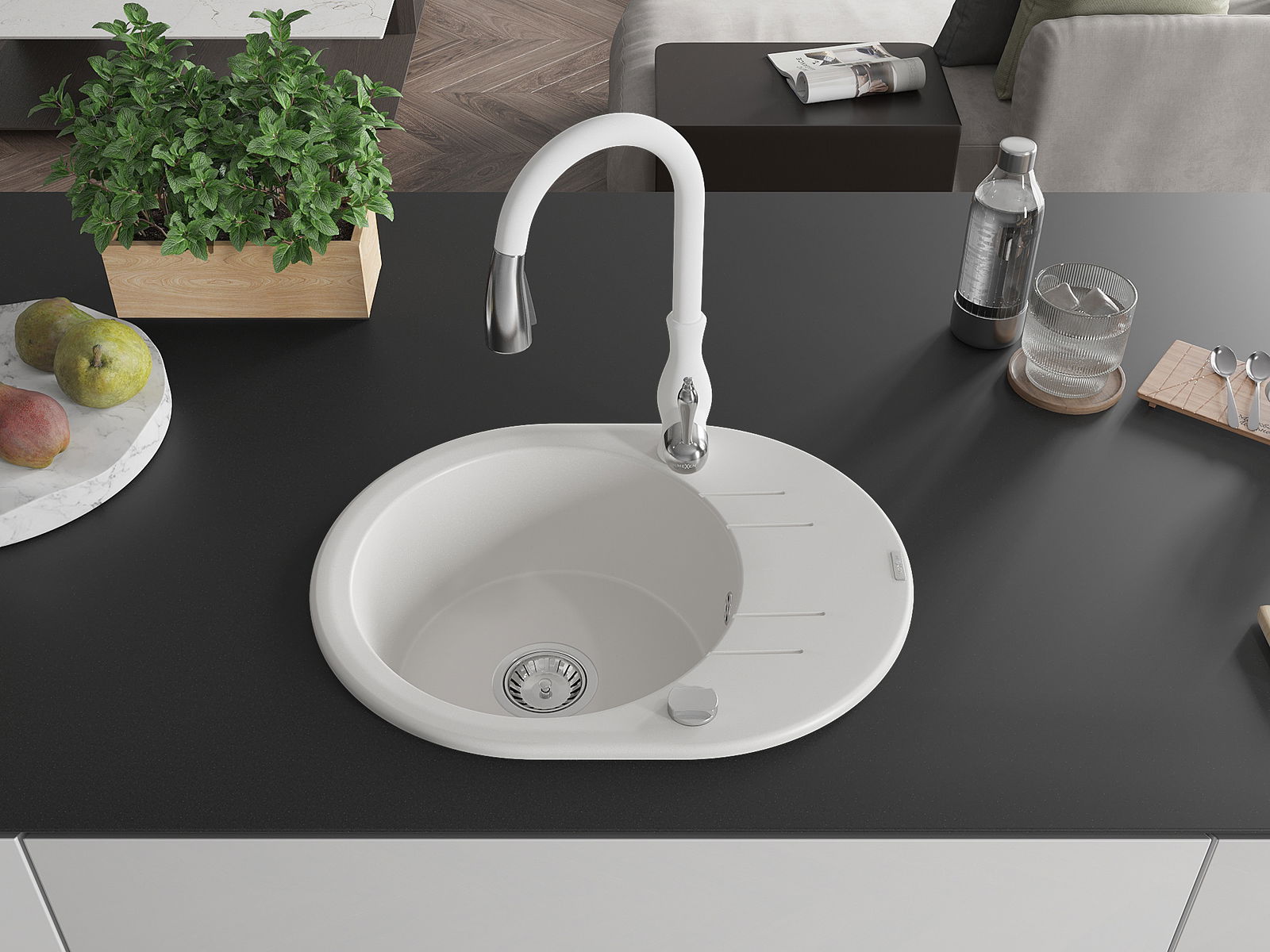 Mexen Kevin Granitais izlietne ar vienu nodalījumu un noteces paliktni un virtuves jaucējkrānu Savita, balts - 6517-20-672601-20