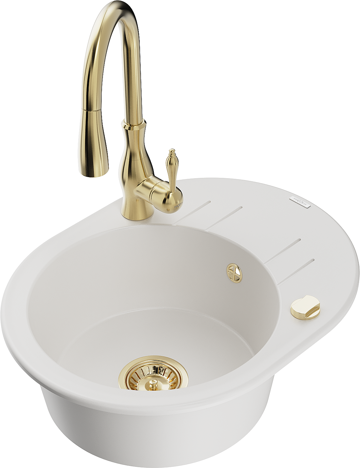 Mexen Kevin granitizlietne ar 1 nodalījumu, ar noteku un virtuves jaucējkrānu Savita, balts - 6517-20-672601-50